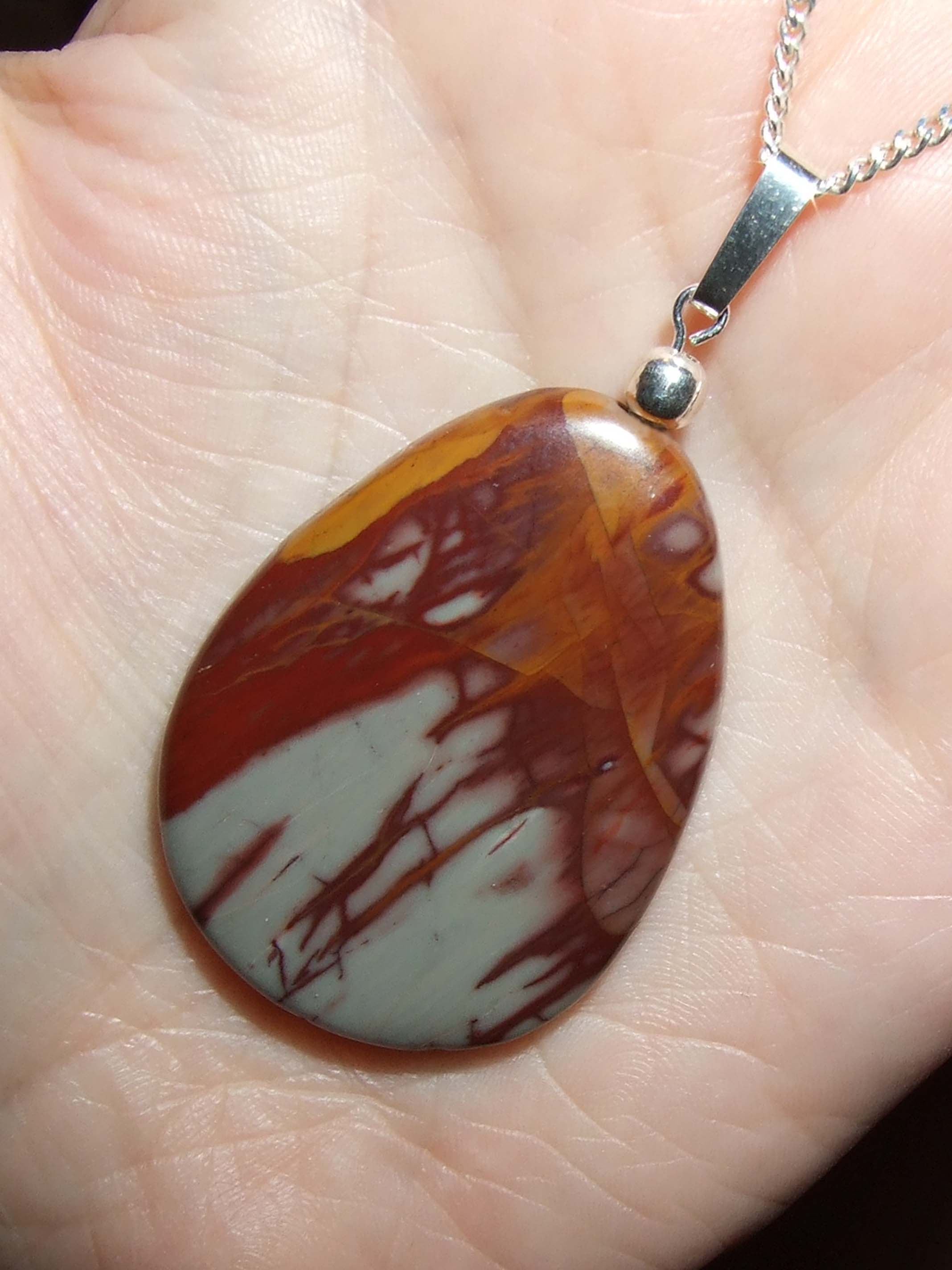 Und hier zeige ich euch meine schöne Steinscheibe aus rot-weiß gemaserten Jaspis in Freeform. An den Rändern wurde sie auch etwas nachgeschliffen. Auch solche Formen wie auch die Farbe mit der tollen Maserung des Steines finde ich wunderschön. :D