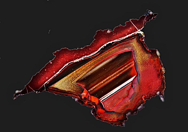 Als Bilder zeige ich einen geschnittenen und polierten Jaspisbrocken sowie Microaufnahmen des Jaspis