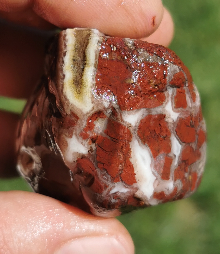 Aber auch die Jaspis-Anteile in den schönen Farbtönen mit den wundervollen Maserungen finde ich faszinierend.