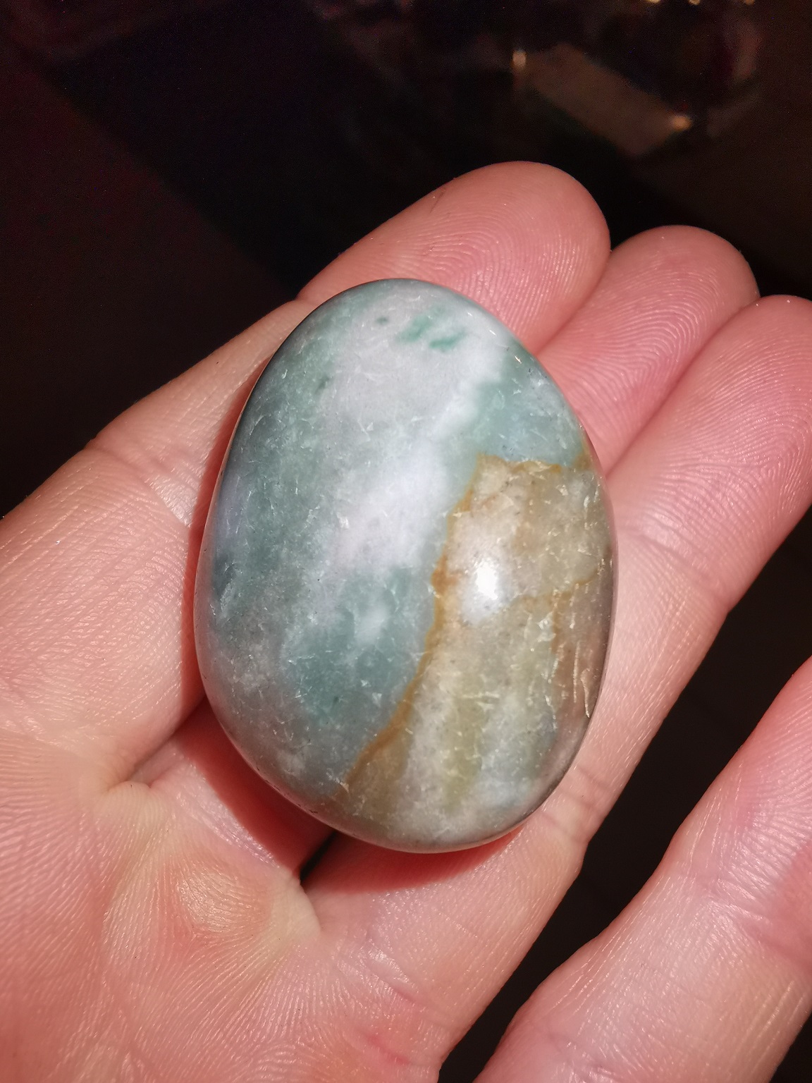 Ja, der Stein hat 3 (4) Farben, könnte dann auch ein sehr heller Buntjaspis sein.