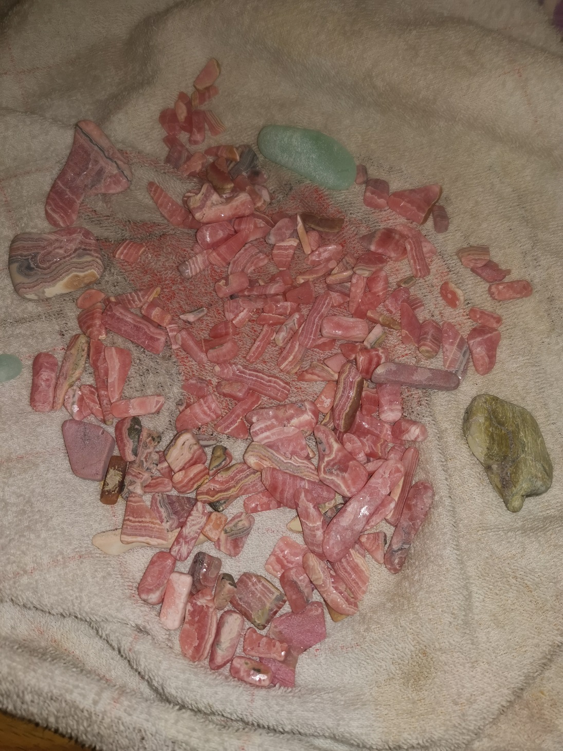 Venom hat geschrieben: 01.11.2021, 21:13 Habe mir ein paar Rhodochrosit "Abfälle" besorgt.