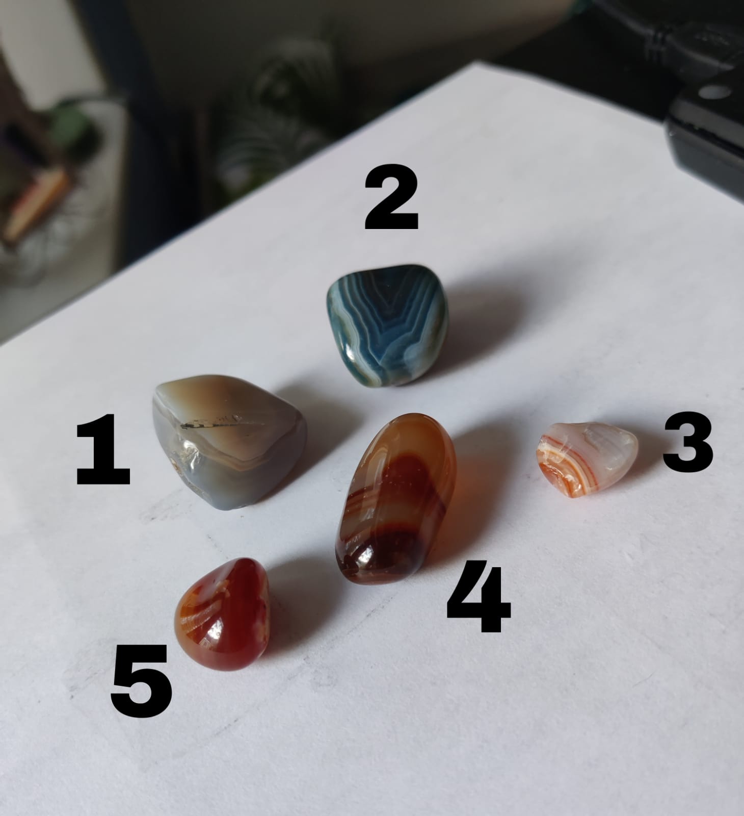 Das sind Achate, der Blaue ist gefärbt, die beiden Roten können Karneol-Achate sein karneol-f378.html