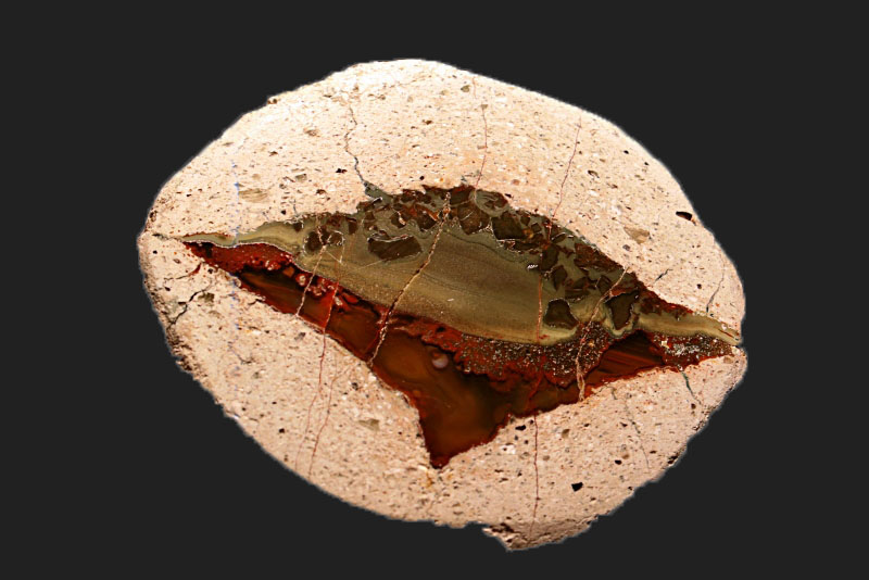 Die Kugelfüllungen sind feine verkieselte und verfestigte Vulkanaschen.(also eine Art Jaspis)