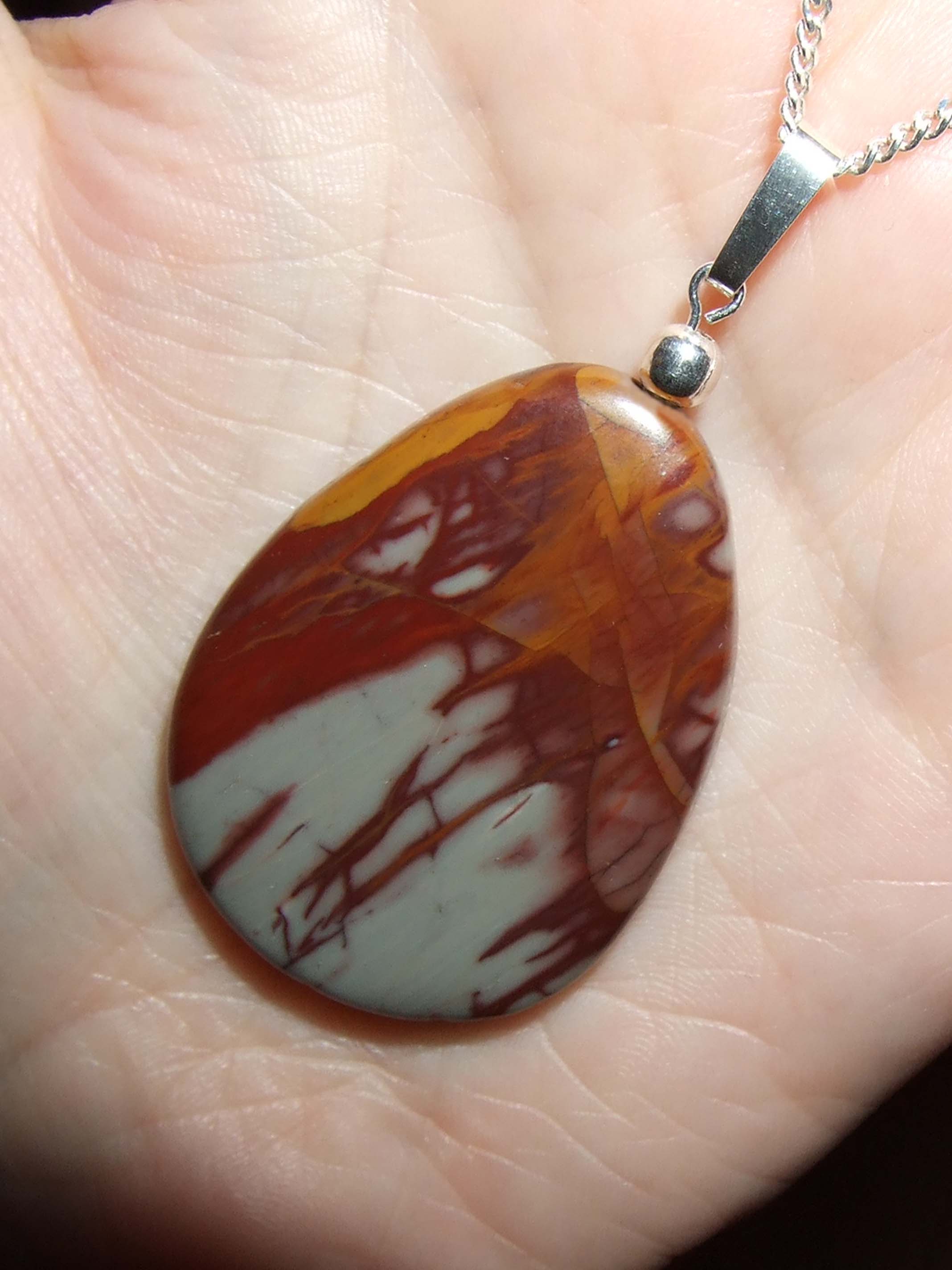 Seit gestern ist es ein ovaler Rhodonit-Anhänger, den ich auch sehr mag.
