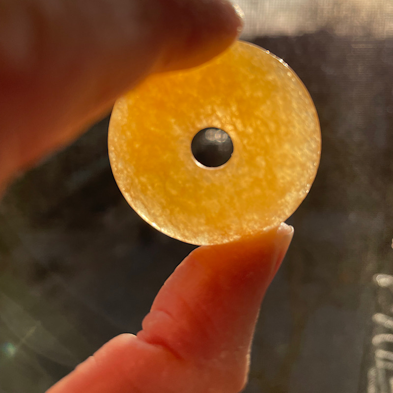 ich habe einen orange-gelblichen Steindonut und bin mir unsicher, um welchen Heilstein es sich hier handelt. Er ist leicht durchsichtig.