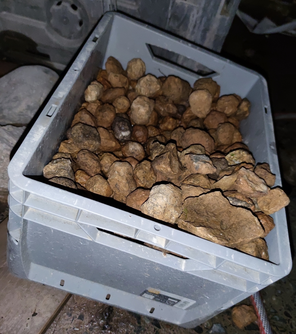 Ich habe eine richtig gute Ausbeute, wobei die meisten nur mit Erde oder ähnlichem gefüllt sind. Ich werde sie so nach und nach alle aufsägen und hoffe, wenigstens ein paar schöne Stücke dabei zu haben.