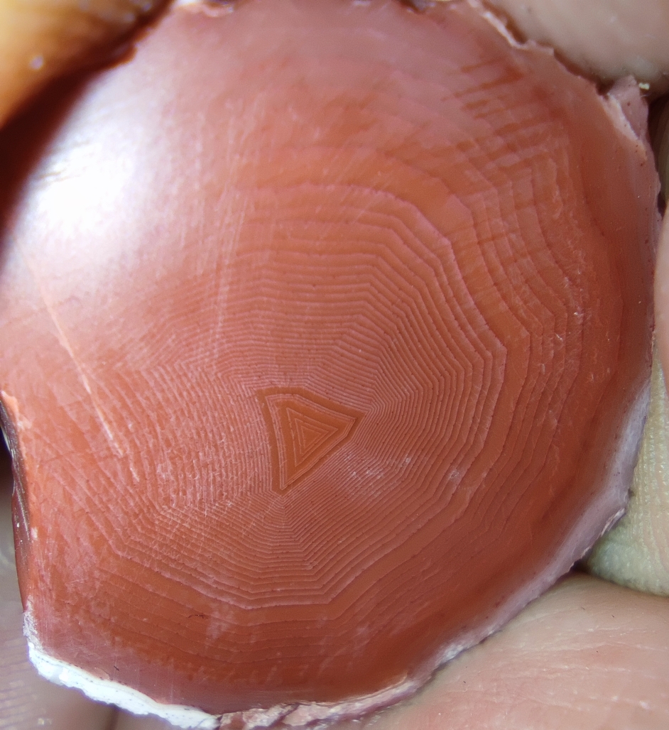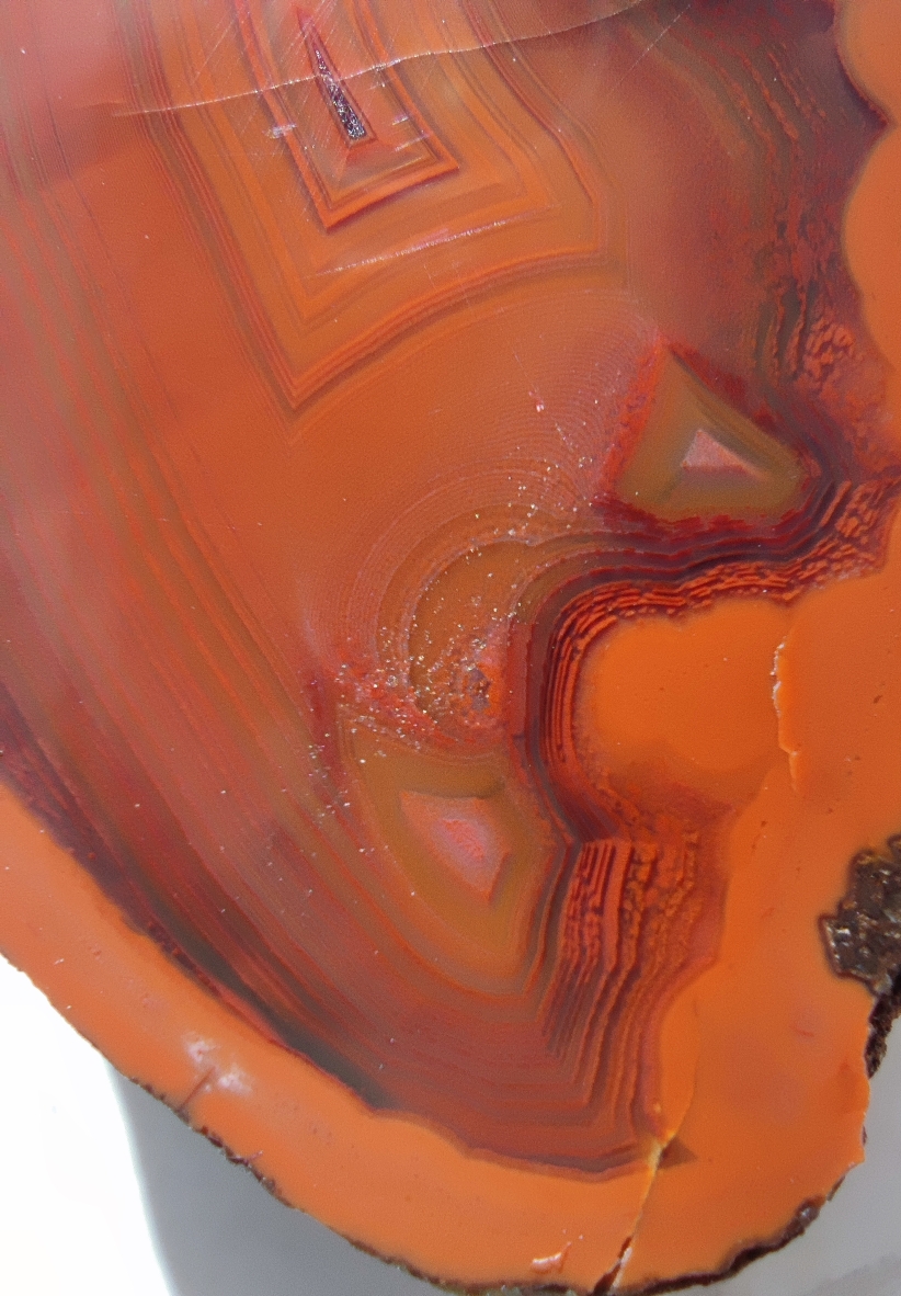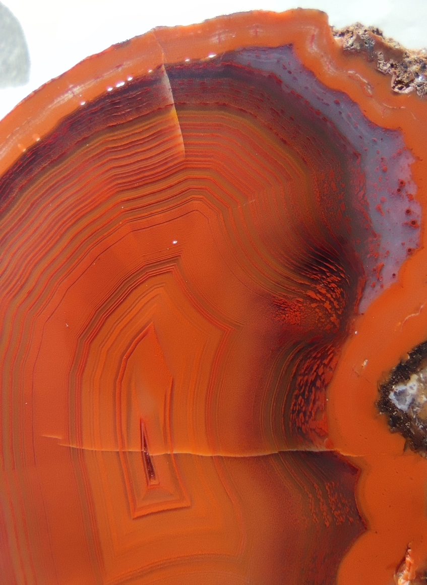 Manche Achate verraten einem schon von außen, was in ihnen versteckt seien wird. So hat zum Beispiel dieses Stück außen kleine absplitterungen, die einem verraten, dass in ihm mindestens die gleiche Farbe steckt, wie bei dem Bild darunter.