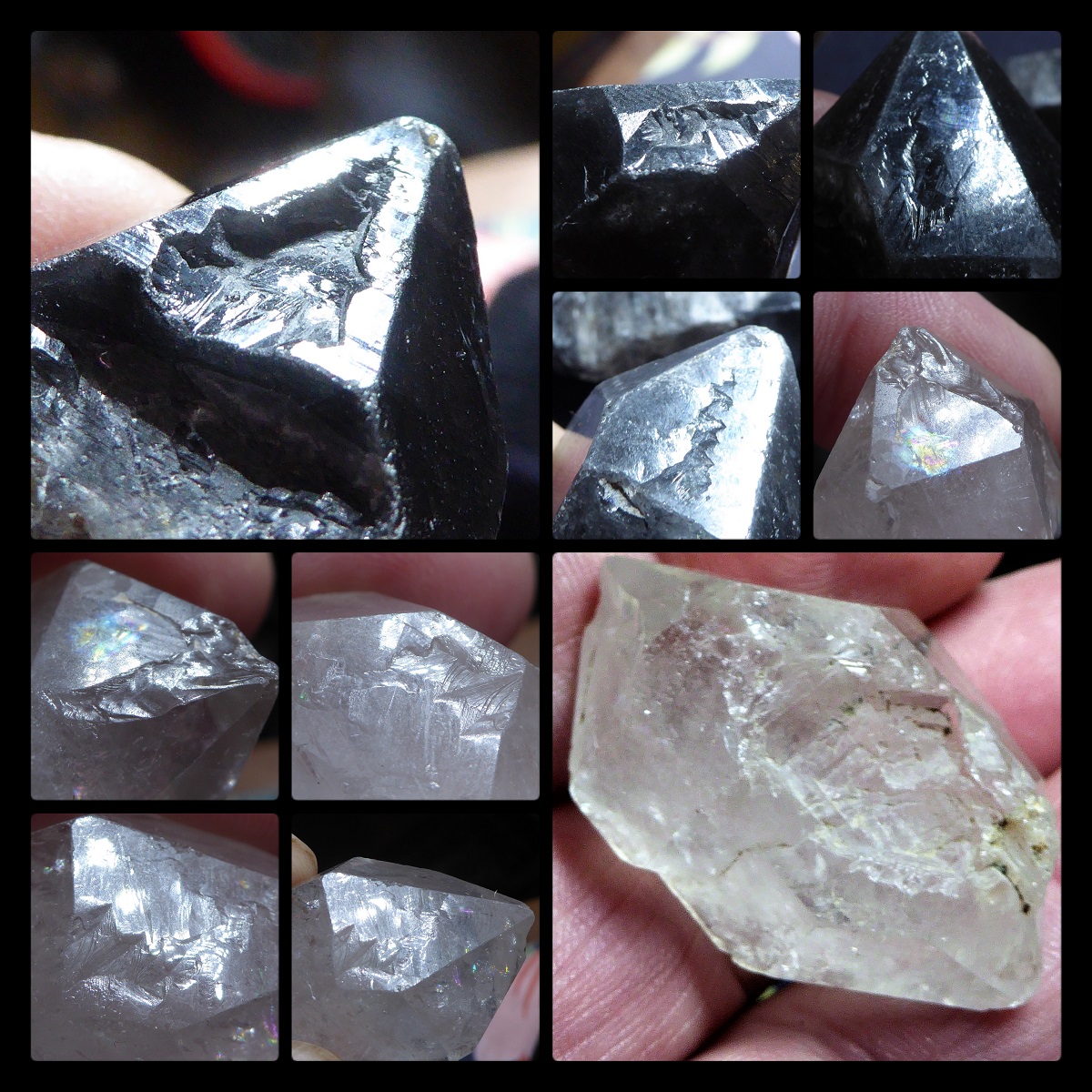 Stellen , wo anderes Gestein ausgebrochen ist von einem Rauchquarz kenn ich nur so....