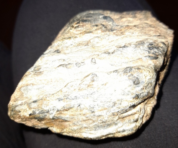 Durch das Blitzlicht sieht man die fein verteilten Pyrit-Partikel erst, sonst würde er wegen eben geringer Menge nicht auffallen. ;-)