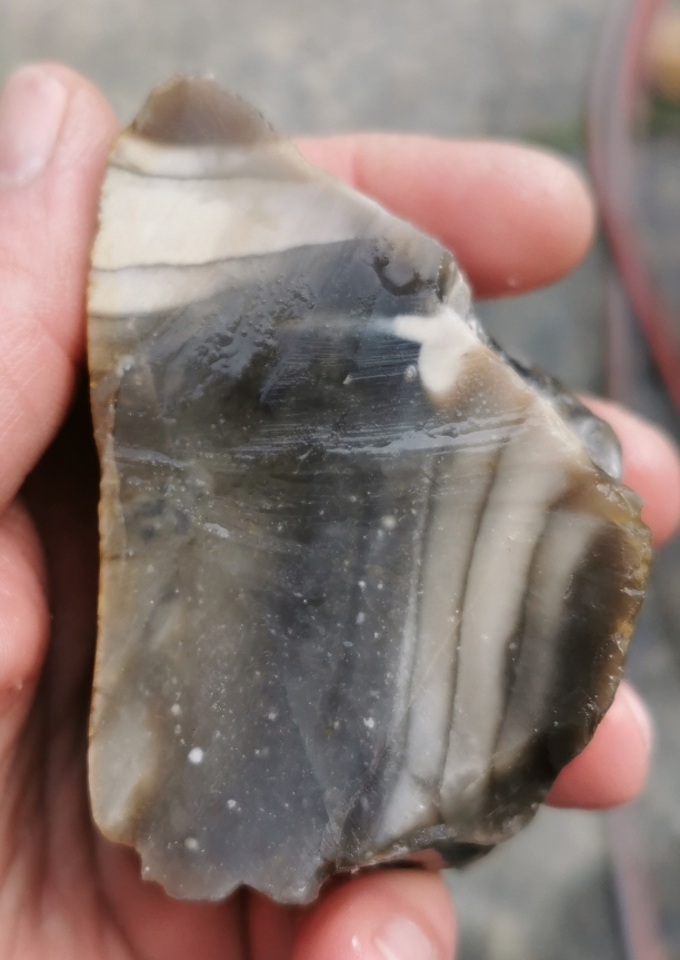Und ein flacher schwarzer ebenfalls getrommelter Feuerstein.