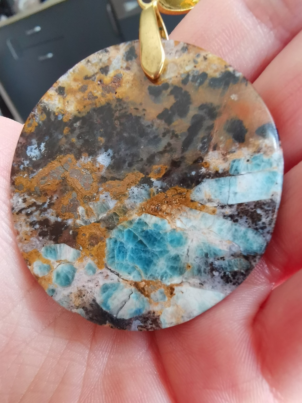 Ein schöner Anhänger, ob Brekzie oder geklebt... Und genau die Größe, die ich mag. Ich bin auch interessiert, die anderen zu sehen.