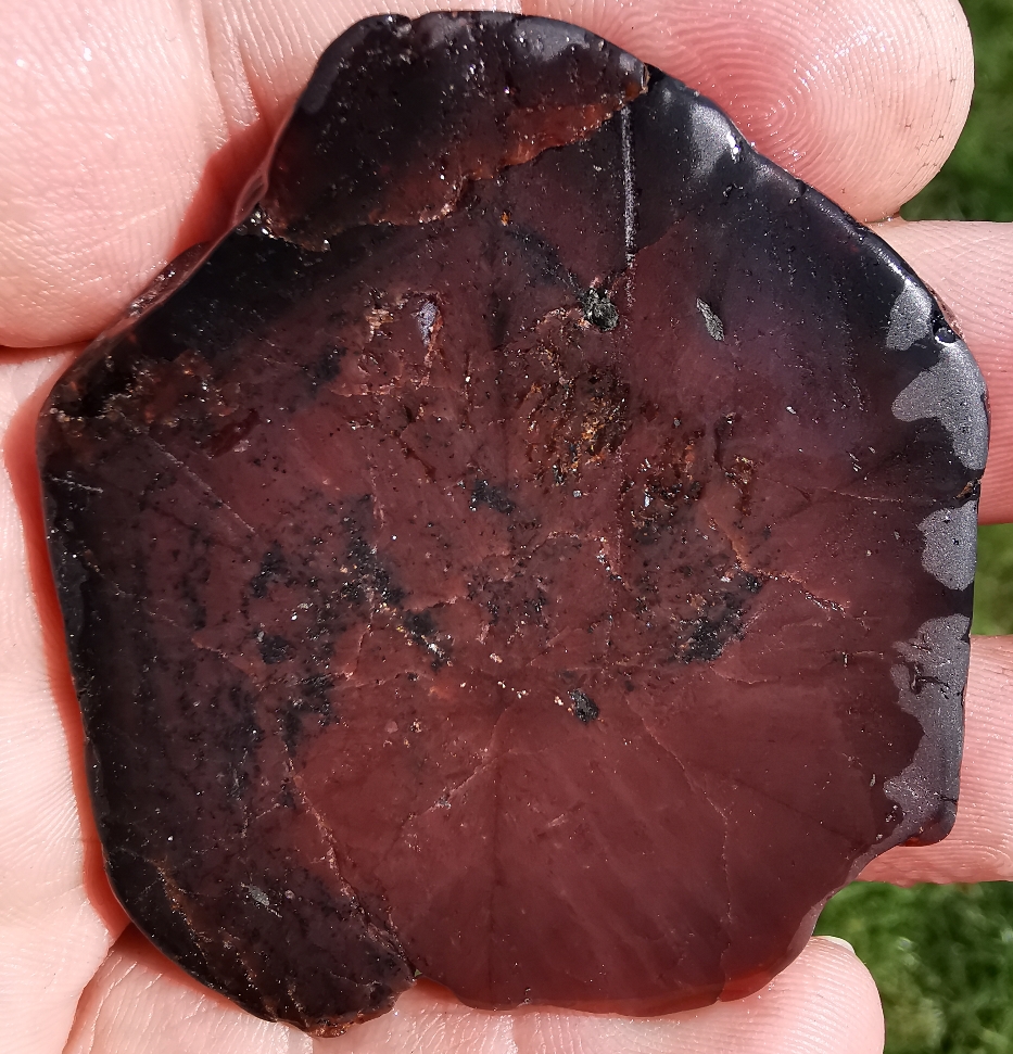 Wie man hier schön sehen kann, hat der Granat nur an der Außenseite die schönen Rot durchscheinenden bereiche, welche recht klein sind.