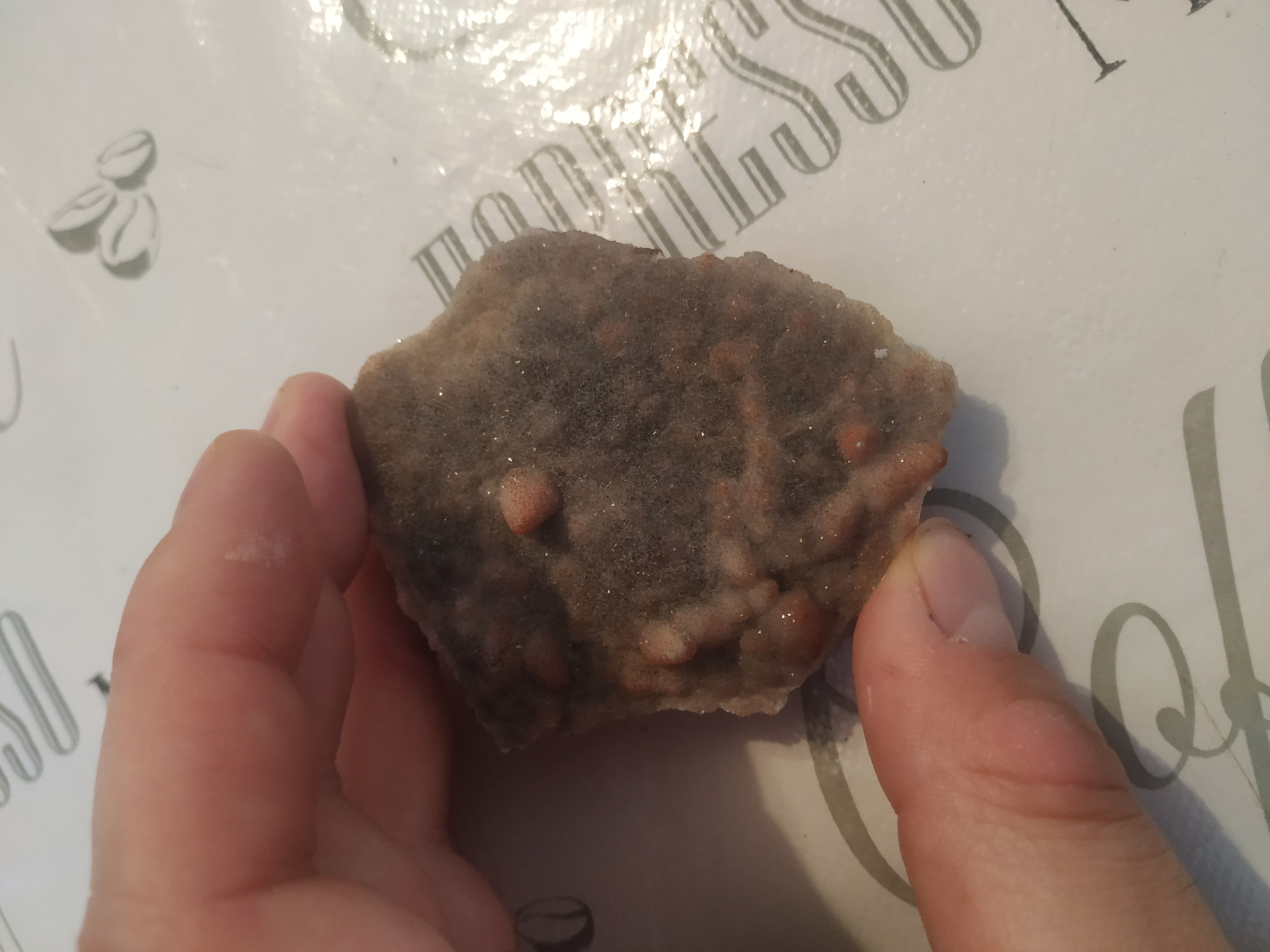 zuviel Hand und Tischdecke und zu wenig vom Stein erkennbar