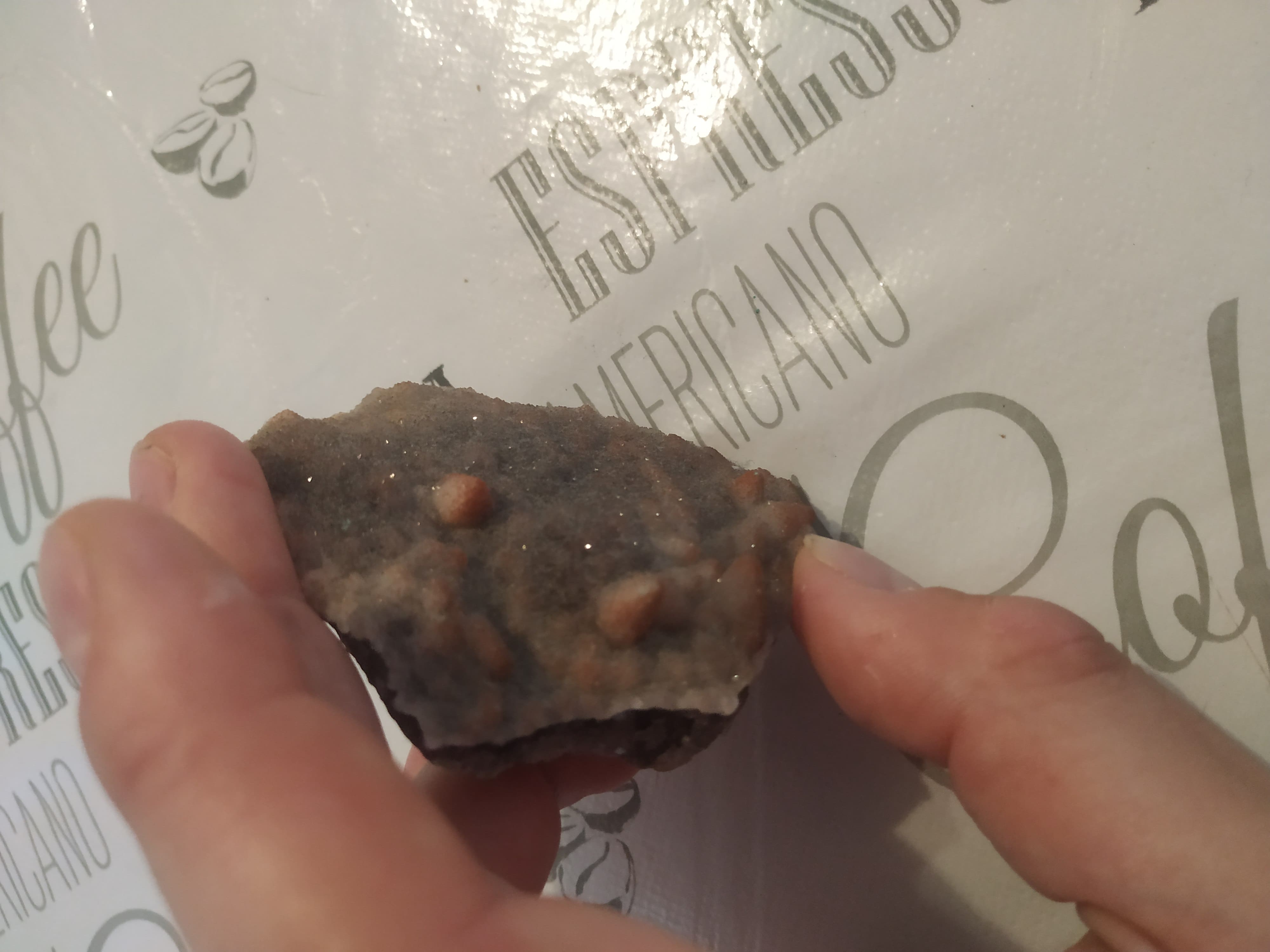 das Rote könnte evt. Eisenkiesel sein und dann evt. kleine Quarzkristalle,