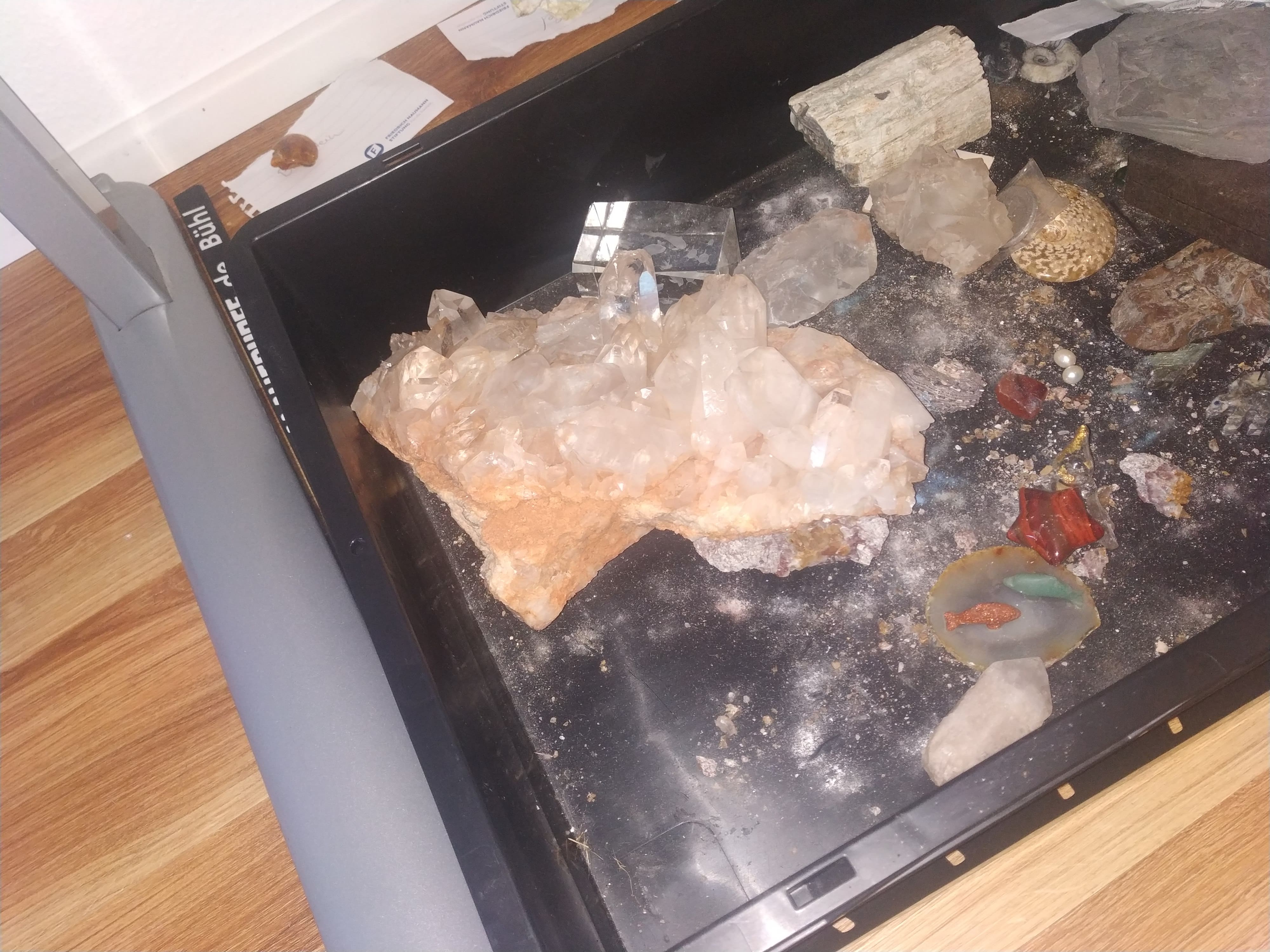 ich bin aktuell dabei, meine Steinesamlung aus Kindheitstagen zu verkaufen und habe bei einigen Steinen Probleme mit der Bestimmung. In diesem Fall habe ich hier einen sehr großen Stein mit wirklich großen Kristallen. Der Stein misst etwa 30cm Länge und 15cm Breite. Die Kristalle sind transparent und die größten sind bis zu 7cm lang mit 4cm Durchmesser. Ich glaube mich zu erinnern, dass der Stein im Kinzigtal (Schwarzwald) gekauft wurde und auch in dieser gegend gefunden wurde. Wäre super, wenn mir jemand weiterhelfen könnte! MEine Vermutung ist hier Bergkristall, aber bin mir da wirklich nicht sicher.