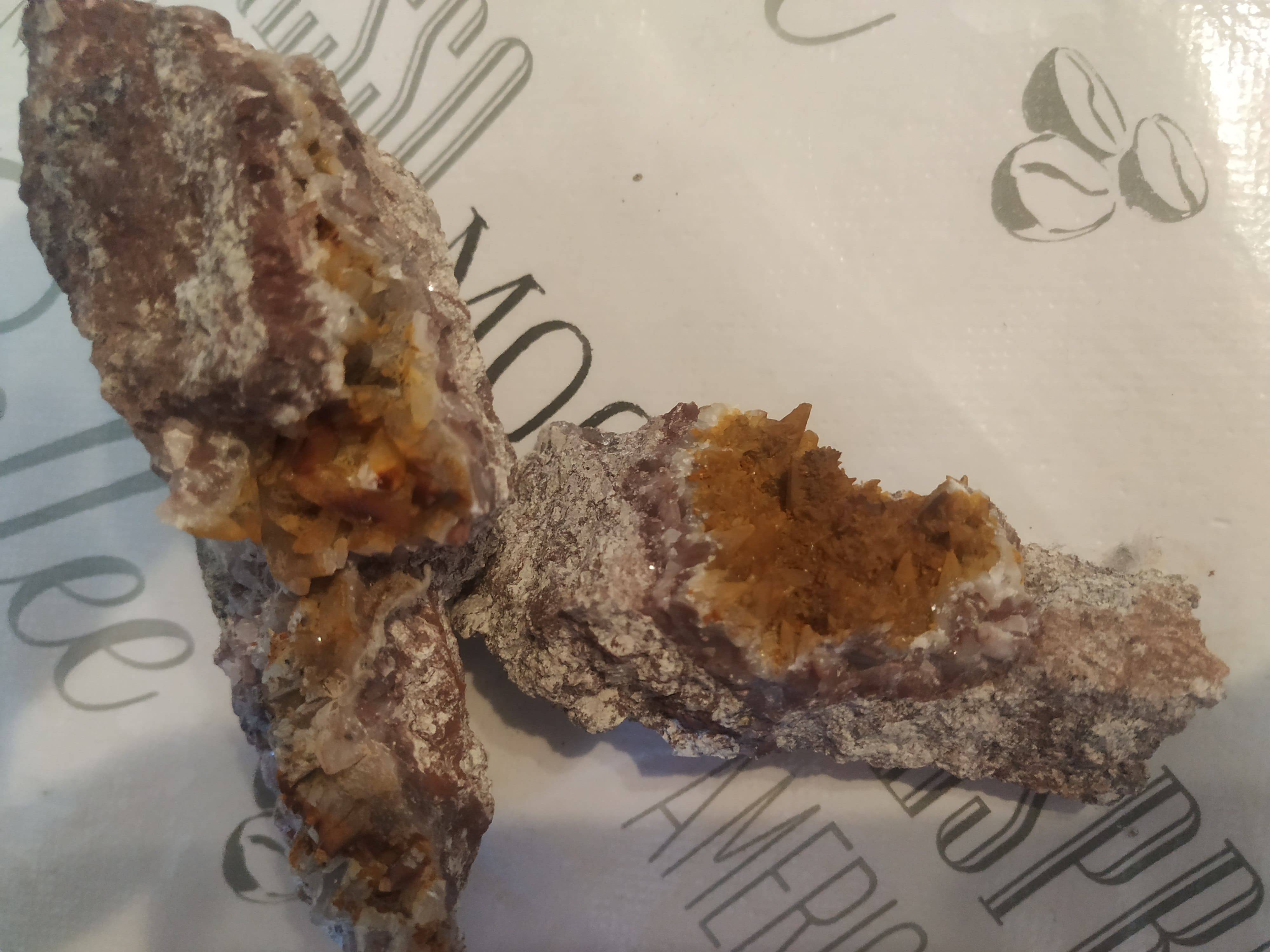 ich bin aktuell dabei, meine Steinesamlung aus Kindheitstagen zu verkaufen und habe bei einigen Steinen Probleme mit der Bestimmung. In diesem Fall habe ich hier ein sehr unspektakuläres Gestein, dass jedoch rostfarbene Kristalle besitzt. Für diese interessiere ich mich. Der große Stein hat etwa 10cm Länge und 5cm Breite. Wäre super, wenn mir jemand weiterhelfen könnte.