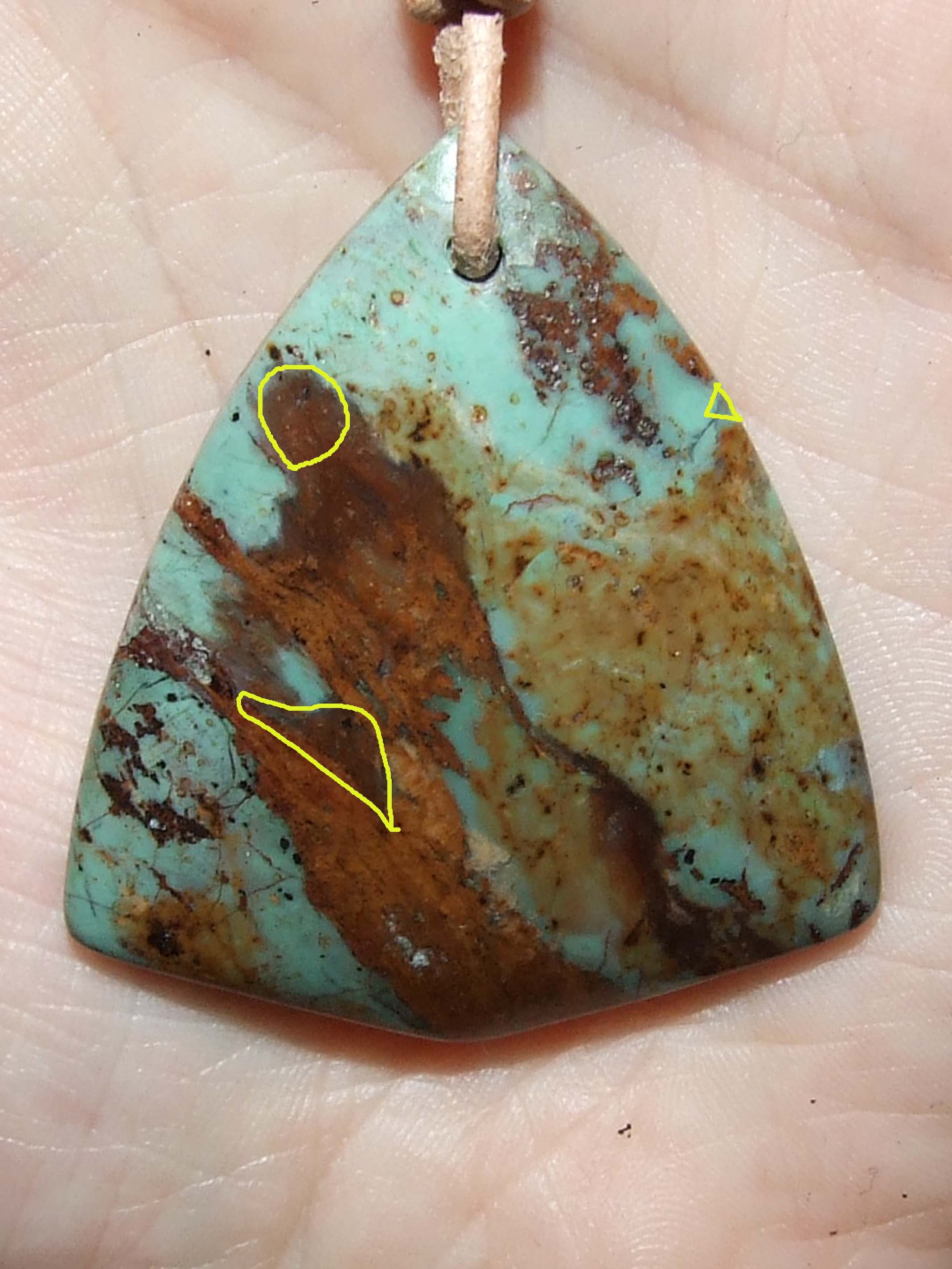 Schau mal genauer beim Bohrloch ... evt versuchen da vorsichtig zu *ritzen*, Türkis ist ja weich.