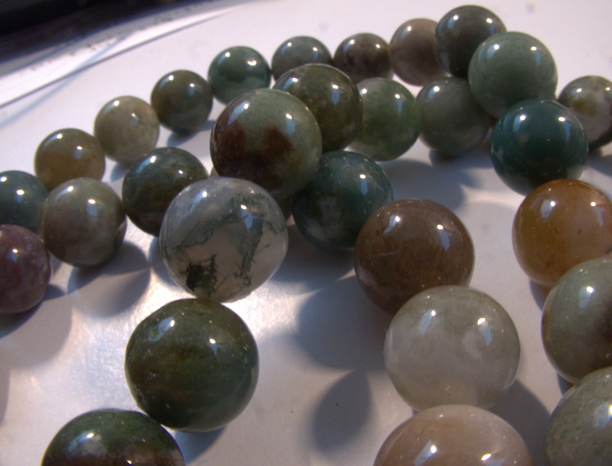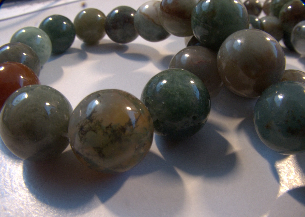 Ich suchte eine Heliotrop-Kette. Leider war sie bei unserem Shop nicht vorrätig, also habe ich sie so im Internet bestellt. Nun bin ich hin und her gerissen. Für mich sieht das nicht nach Heliotrop, sondern ehr nach Moosachat aus. Wie seht Ihr das?