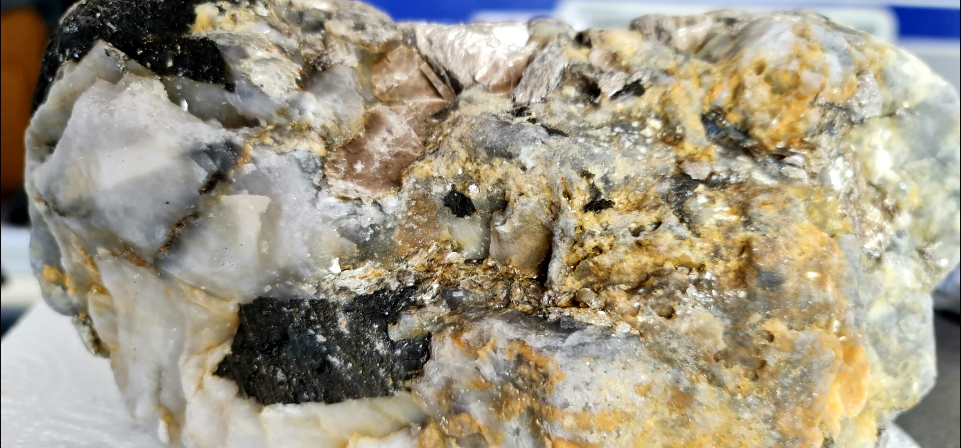 Ich vermute Quarz und Limonit. Beim schwarzen bin ich mir nicht sicher. Zu viele Mineralien sehen da ähnlich aus.