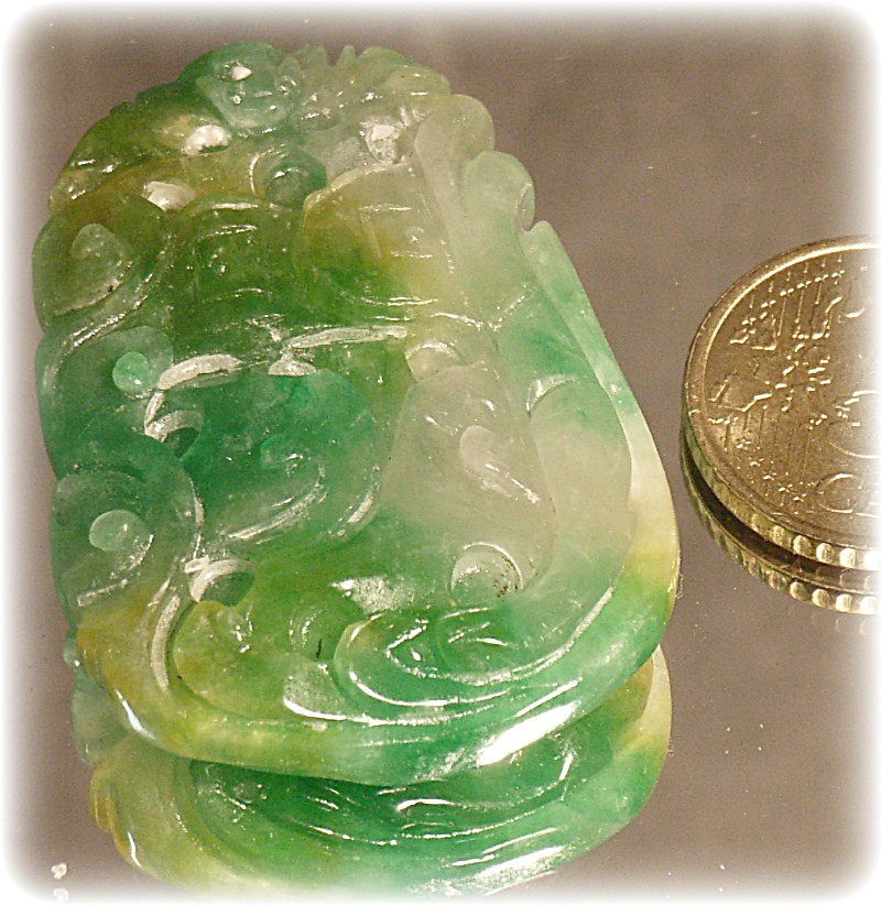 Jade , auch Jadeit, verschiedene Steine, die unter der Bezeichnung Jade bekannt sind. Auch als Heilstein.