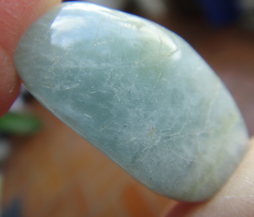 Auch dieser Stein ist sehr schön, diesmal etwas größer. Toll. Solch einer fehlt mir auch noch in meiner Sammlung. Ich habe zwei kleine, 8 mm große Aquamarin-Kugeln, aus denen ich Ohrringe gefertigt habe. Aber einen Anhänger oder Stein dieser Art muss ich mir auch mal noch zulegen.und noch ein Aquamarin ca. 3 cm