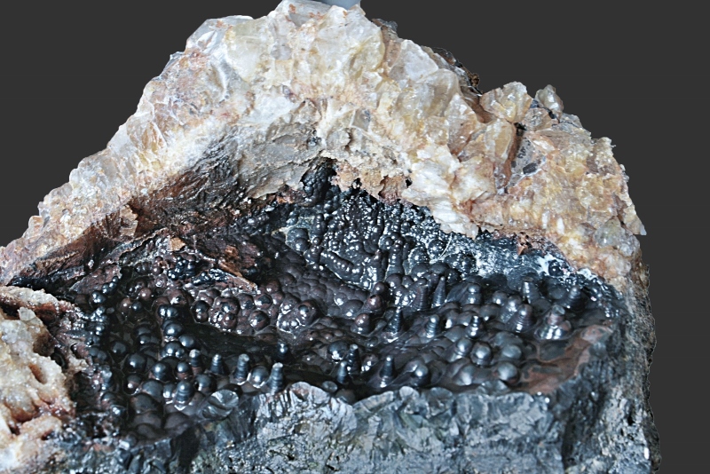 östlich vom Leubetha im Waldgebiet. eine Quarzstufe mit 3cm großen Kristallen und eine Stufe mit Limonit Stalgmiten