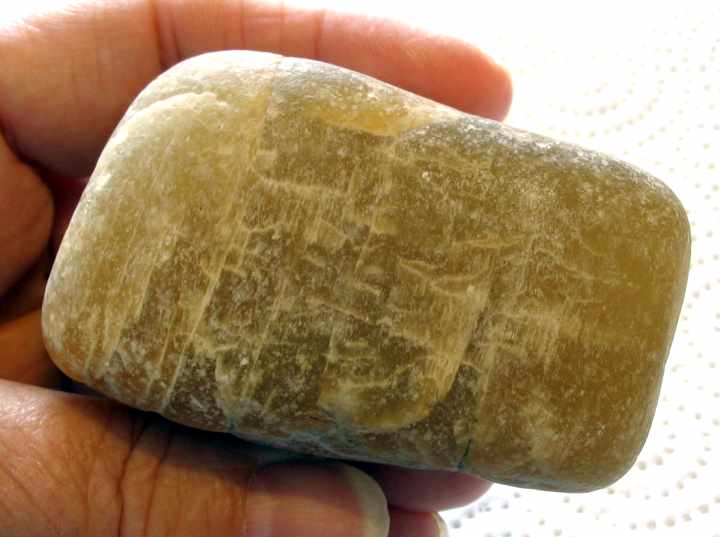 Faserkalk ist meißtens gelblich bis graugrün, es gibt aber auch rosafarbenen, der aber selten ist.