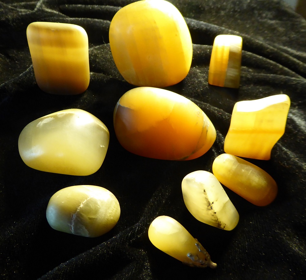 Da der Stein besonders bei grüner oder gelber Farbe durchscheinend ist, kann er sehr schön von unten beleuchtet werden.