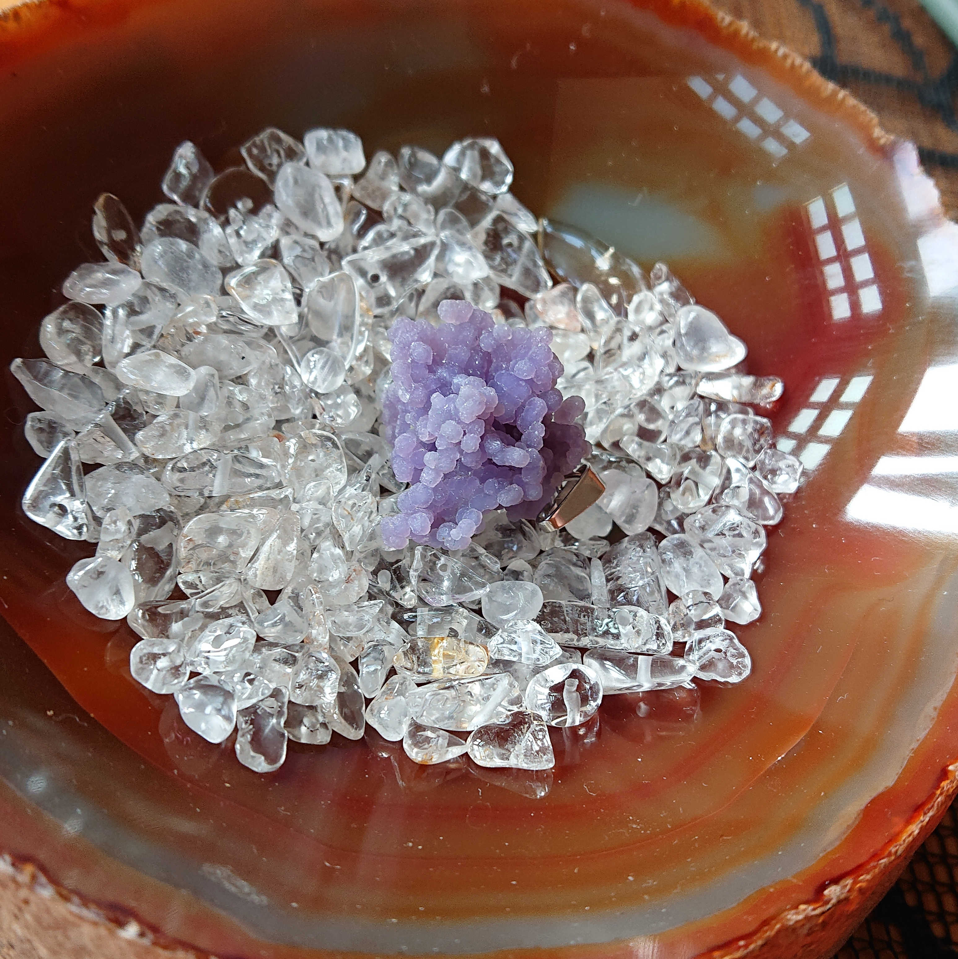 Lila Chalcedon unterstützt die Entwicklung der persönlichen Integrität und erhöht die Großzügigkeit. Ersetzt selbstbezogenes Verhalten durch wohltätige Handlungen, die vom Spirit veranlasst werden. Er verstärkt unsere angeborene Fähigkeiten für Hellsehen, Channeling und intuitives Wissen. Er ist ein wunderbares Kristallwerkzeug für Traumarbeit und schamanisches Reisen. Er soll das Nervensystem stimmulieren und helfen, bei Hirnschäden die Selbstheilung zu aktivieren, lindert Neurosen und Entzündungen der Nerven und Augen.