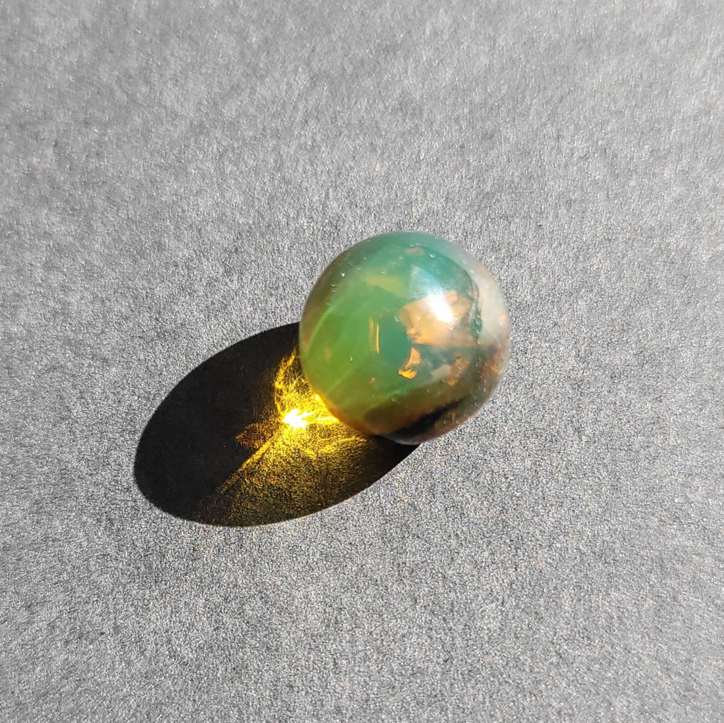 Wenn ich mich recht erinnere sind die klareren sogenannten grünen Bernsteine wirklich irgendwie aussen von mindestens einer Seite geschwärzt oder abgedunkelt um einen grünen Licht Farbstich anzudeuten. Vielleicht ist dies auch manchmal natürlich ?
