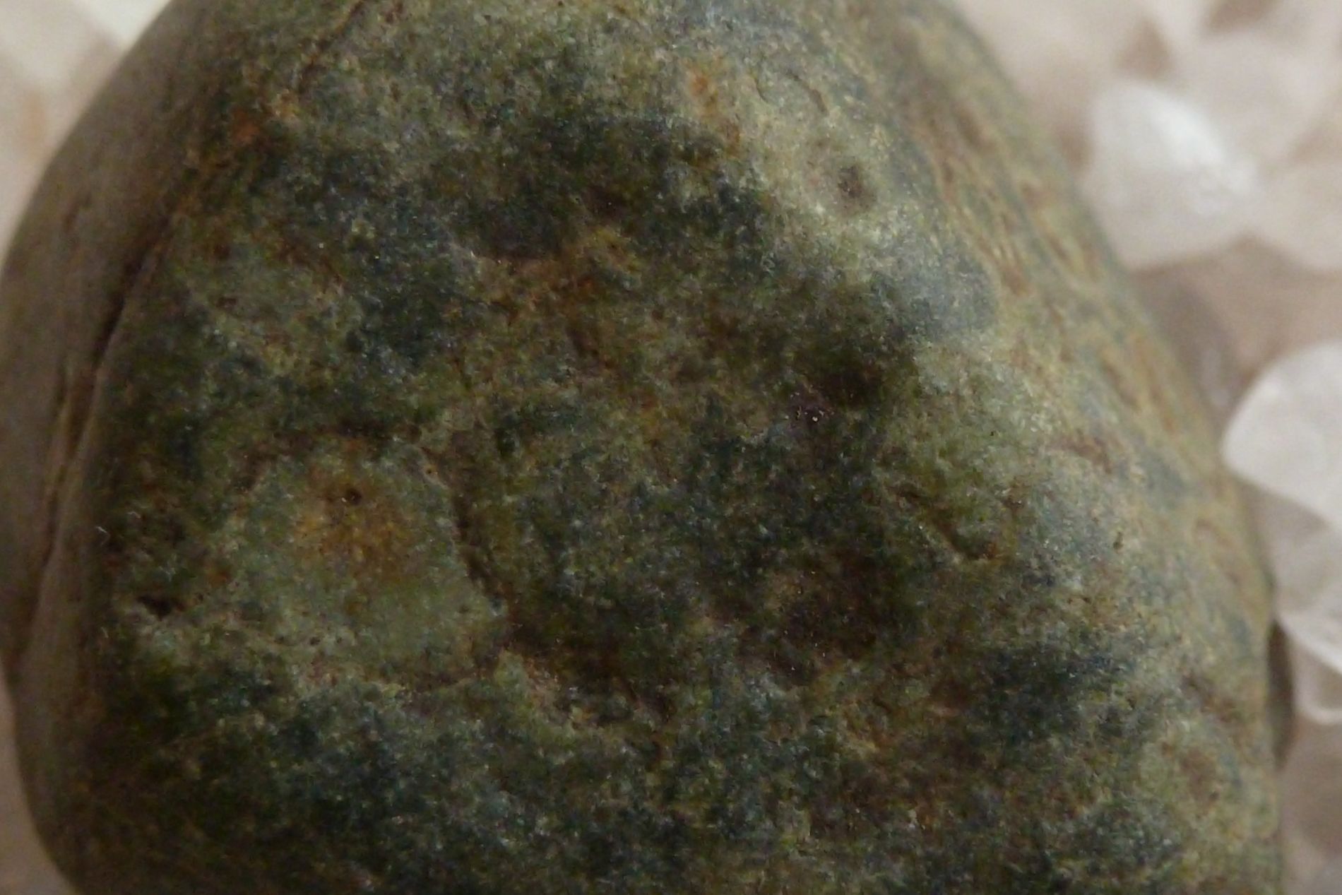 Hier möchte ich auf den grünen Fleck hinweisen, der ewentuell ein Kristall sein könnte?
