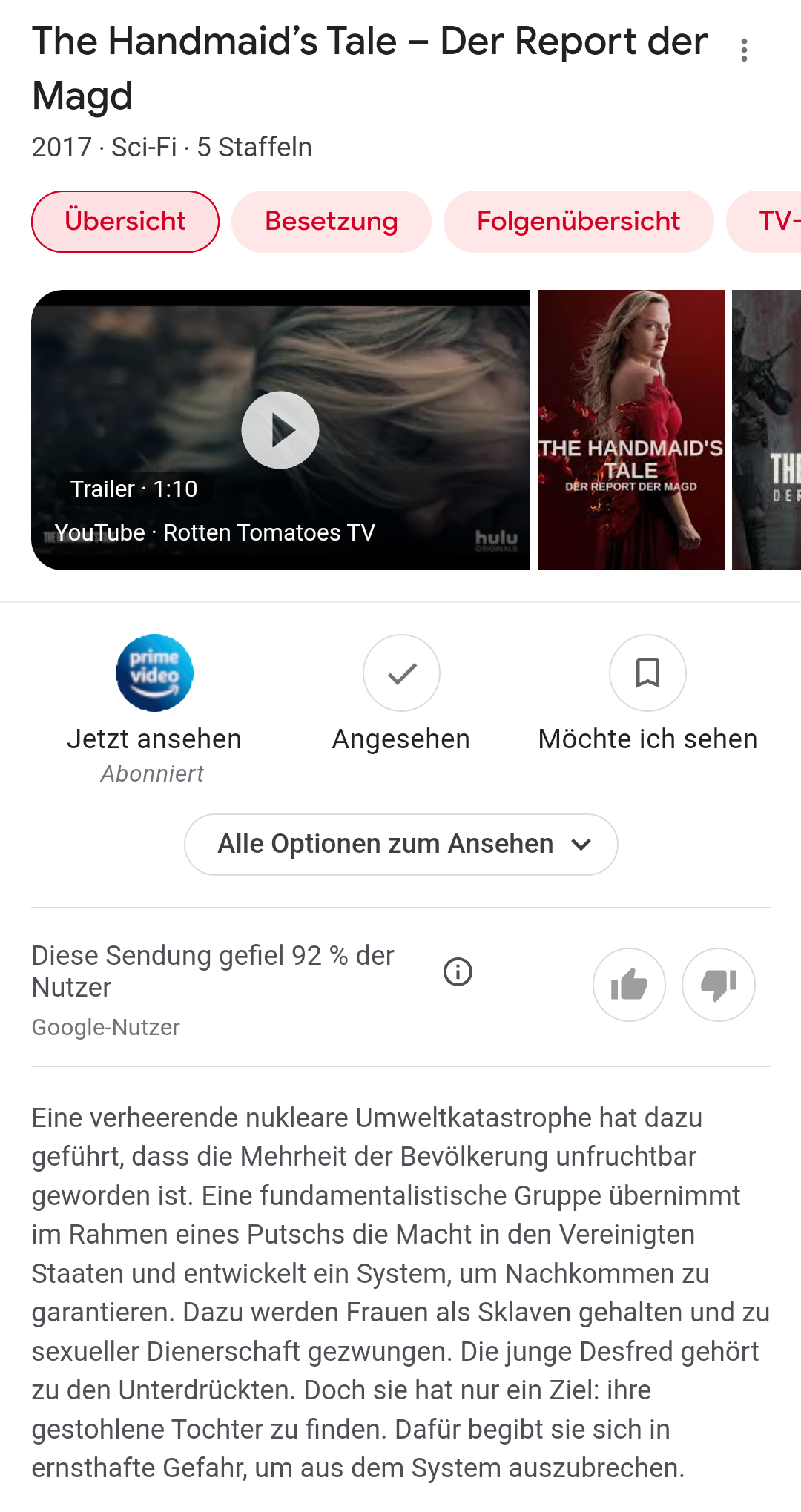 The Handmaid's tale ist super spannend. Hab mir grade noch nen monat magenta tv gekauft, um auch die 5. staffel noch sehen zu können.......