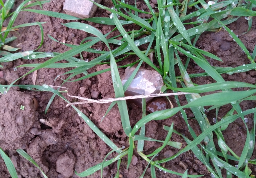 Die Stücke, die ich immer als Quarz benannte, sind übrigens Bergkristalle. Letztes Mal hatte ich auch Heliotop gefunden aber da dieses Mal schon angebaut wurde, war ich nur die Seite abgelaufen und habe somit nur einen Meter Suchfläche gehabt. Dazu kommt noch, dass durch das Sähen die größeren Stücke in den Boden gedrückt wurden und nur das Kleinzeug obendrauf lag.