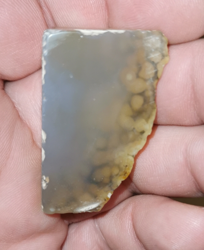 Als erstes ein großes Stück Porzellan Achat, welches leider völlig frei von Bänderungen oder Muster ist. Ist leider etwas unscharf geworden.