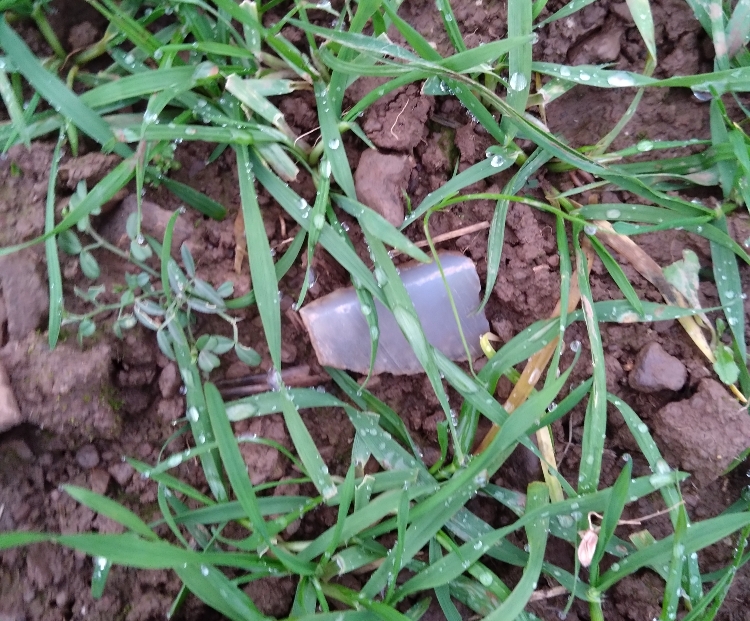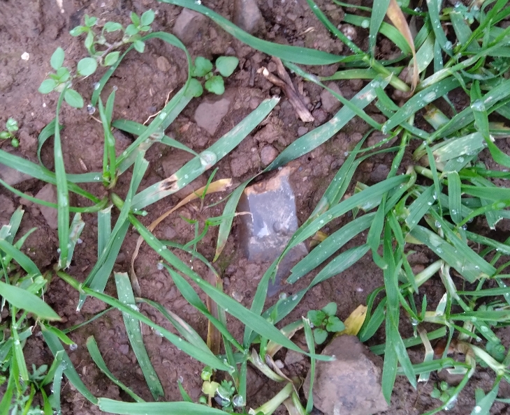 Die Stücke, die ich immer als Quarz benannte, sind übrigens Bergkristalle. Letztes Mal hatte ich auch Heliotop gefunden aber da dieses Mal schon angebaut wurde, war ich nur die Seite abgelaufen und habe somit nur einen Meter Suchfläche gehabt. Dazu kommt noch, dass durch das Sähen die größeren Stücke in den Boden gedrückt wurden und nur das Kleinzeug obendrauf lag.