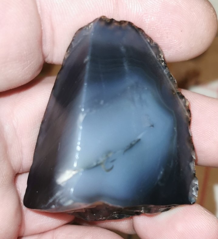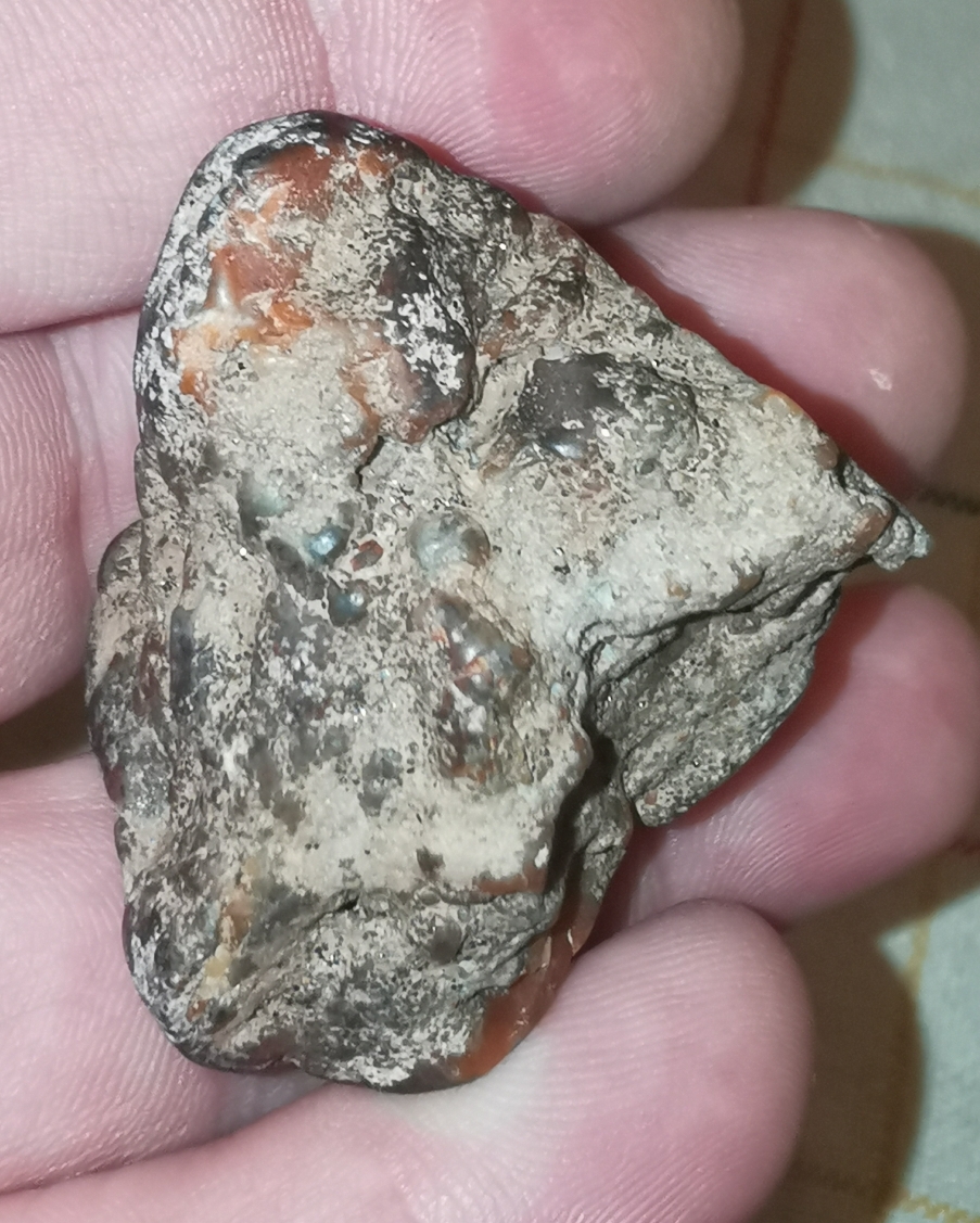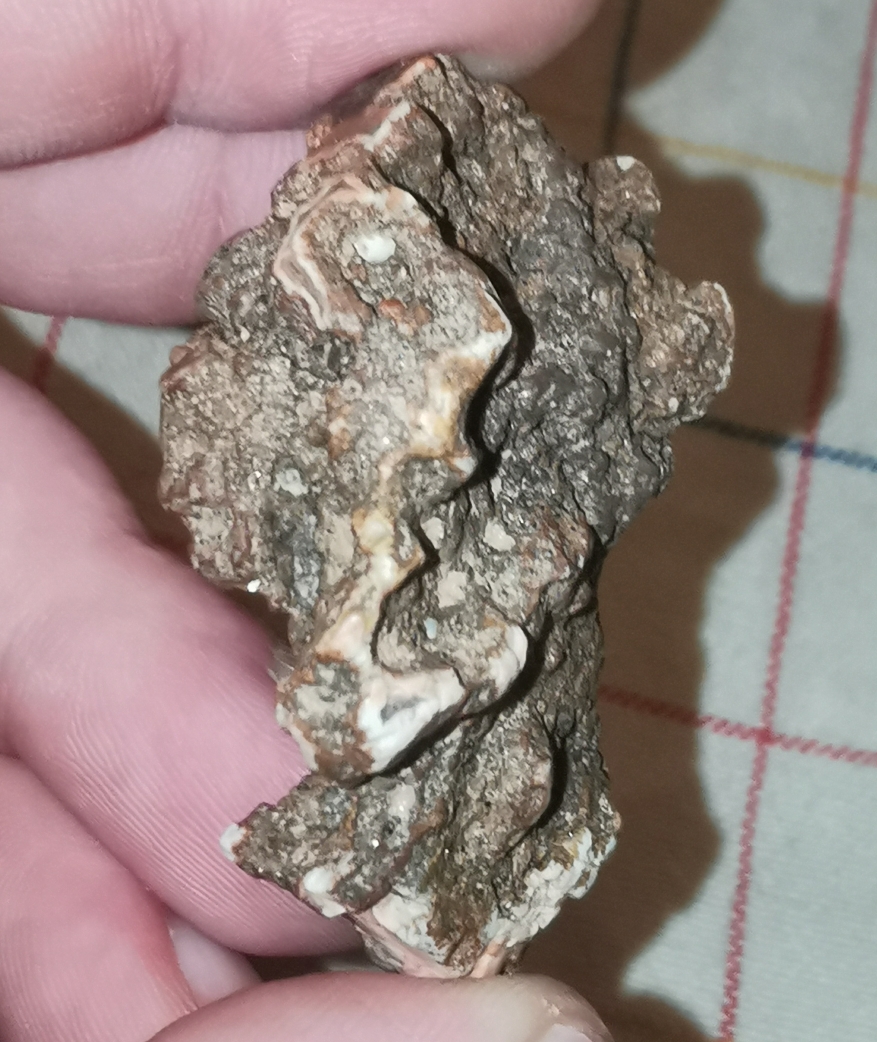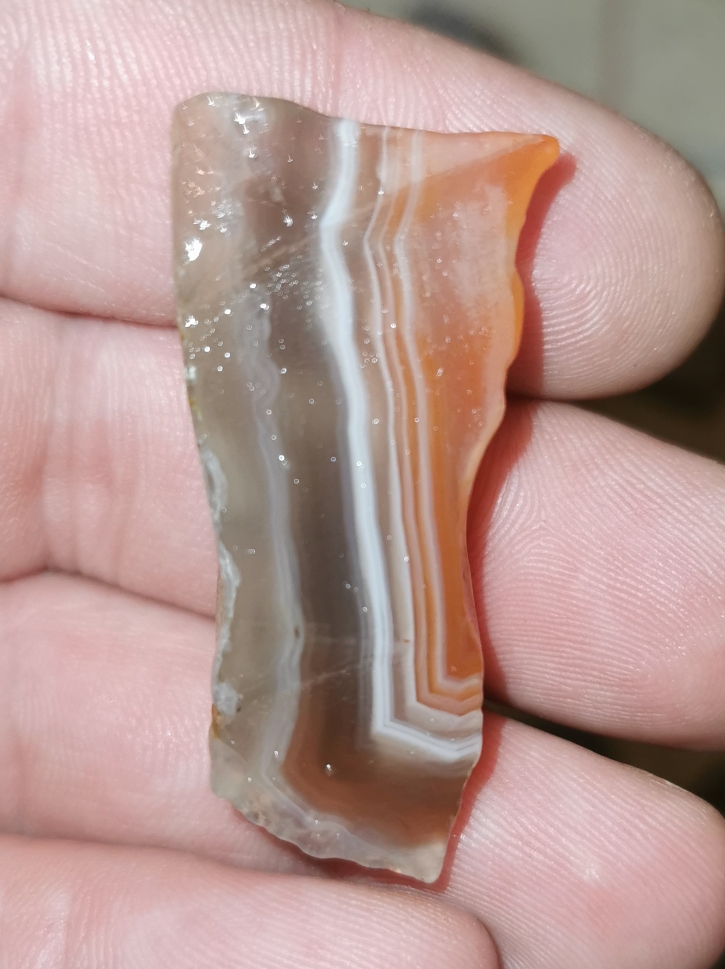 Dieses Stück verwundert mich etwas. Es ist ein Achat aus der Gegend, der Bearbeitungsspuren aufweist. Warum nur hat man den Rest nicht auch weiter verarbeitet?