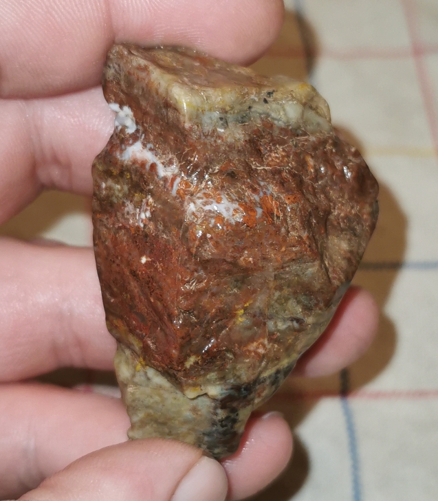 Als erstes ein großes Stück Porzellan Achat, welches leider völlig frei von Bänderungen oder Muster ist. Ist leider etwas unscharf geworden.