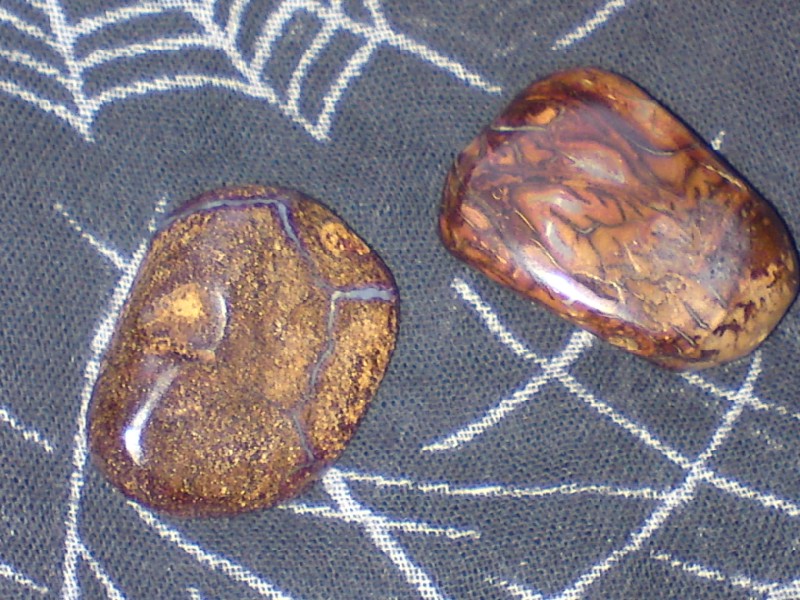 Ersterer ist ein Trommelstein und seine Opalspur bildet eine kleine Gasse durch den Stein: