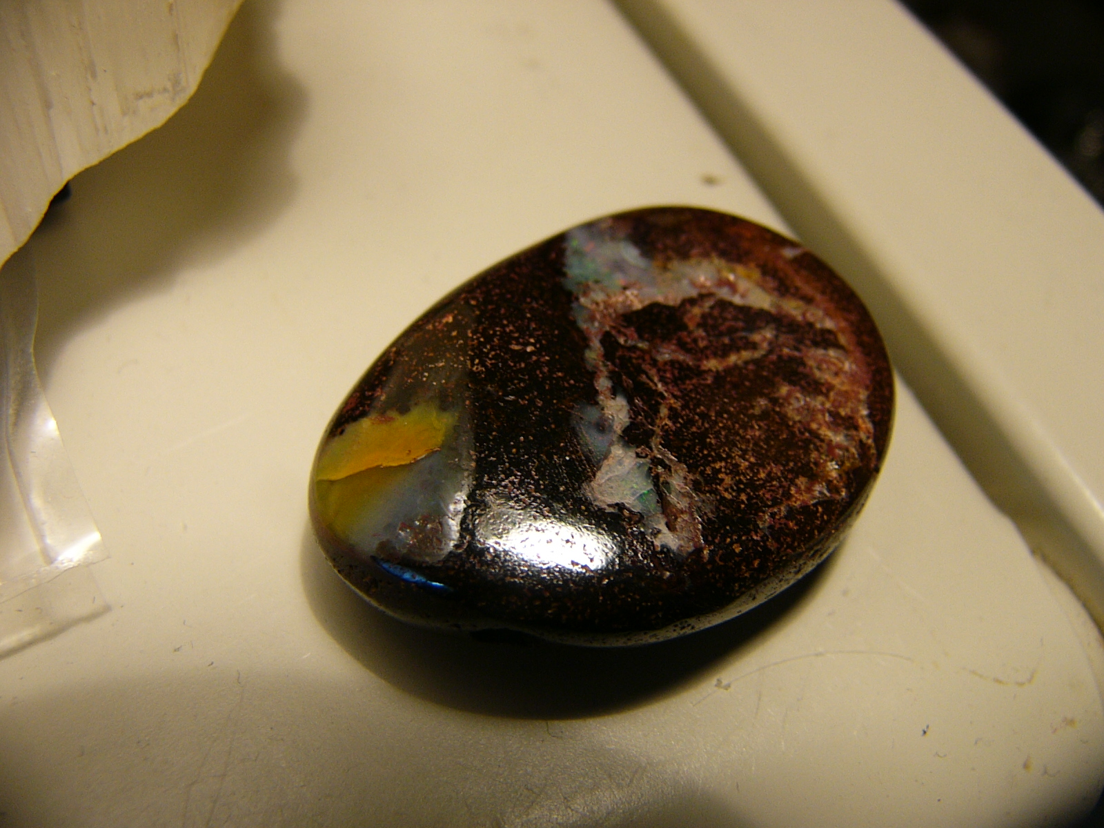 Der Rohstein ist nur etwas kantig zurechtgeschliffen und die Opalsignatur wurde zum Glänzen gebracht: