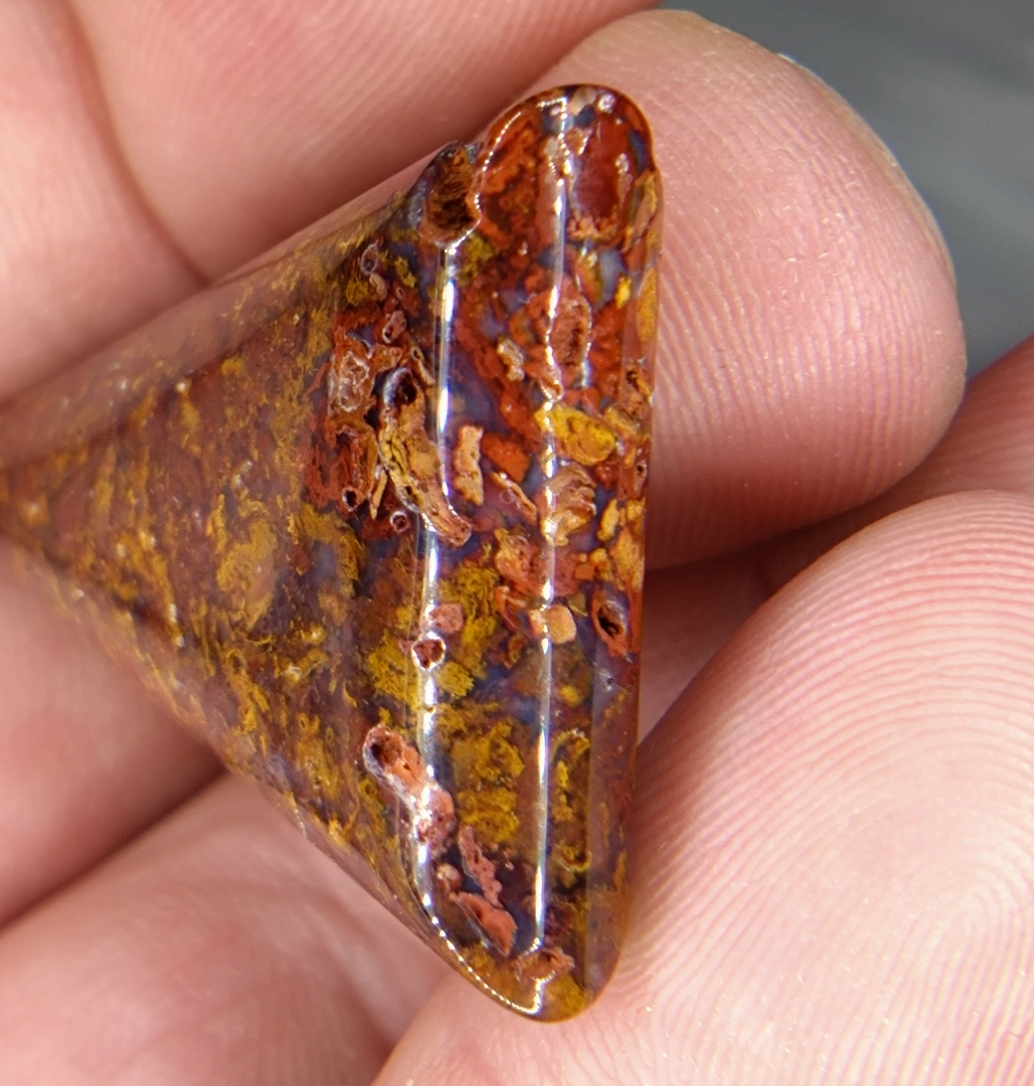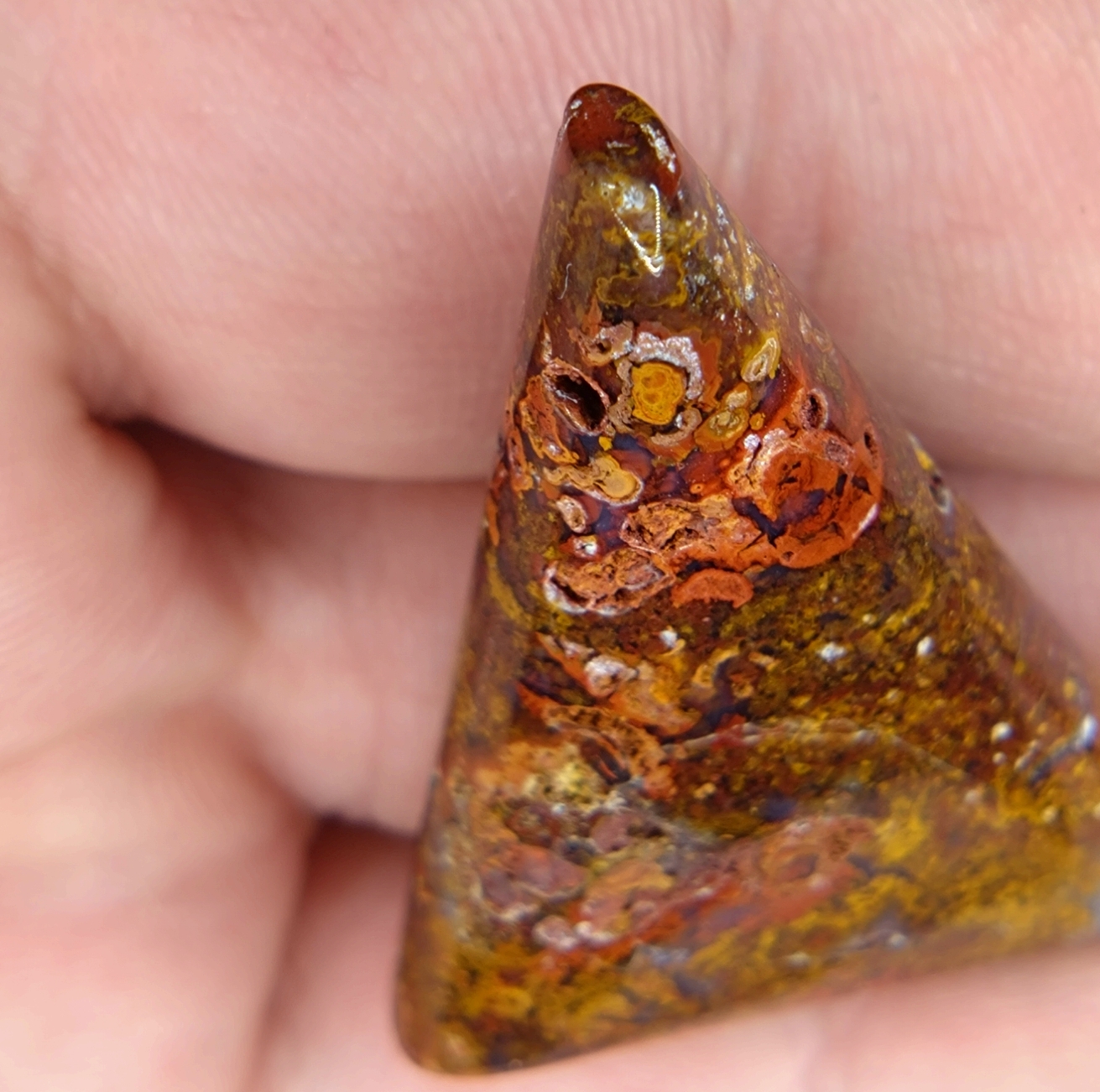 Ich habe eine spezielle Art eines Moos-Achats, welcher stellenweise auch kleine Stücke Erde in sich eingeschlossen hat. Diese wird natürlich beim bearbeiten und bei der Reinigung herausgewaschen, so dass kleine Löcher zurück bleiben.