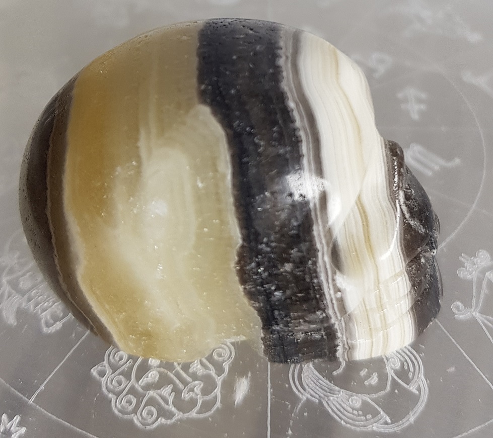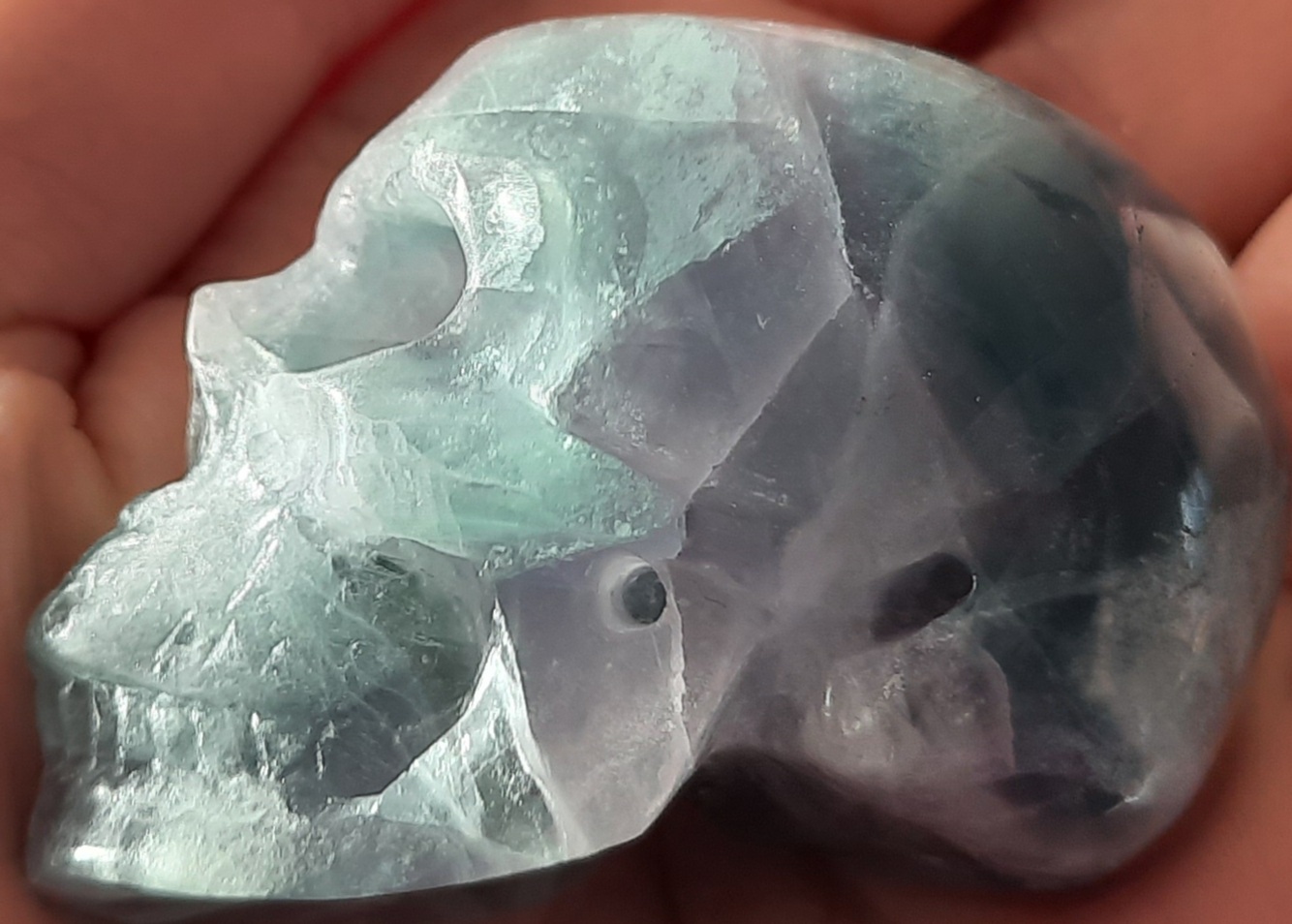 Habe mich Mega gefreut das heut mein Neuer Skull ankam es ist ein Fluorit Skull und heisst Caoilin war ein netter Zettel mit dem Namen dabei. Nun wird er erstmal gereinigt und dann werde ich mich näher mit ihm beschäftigen.