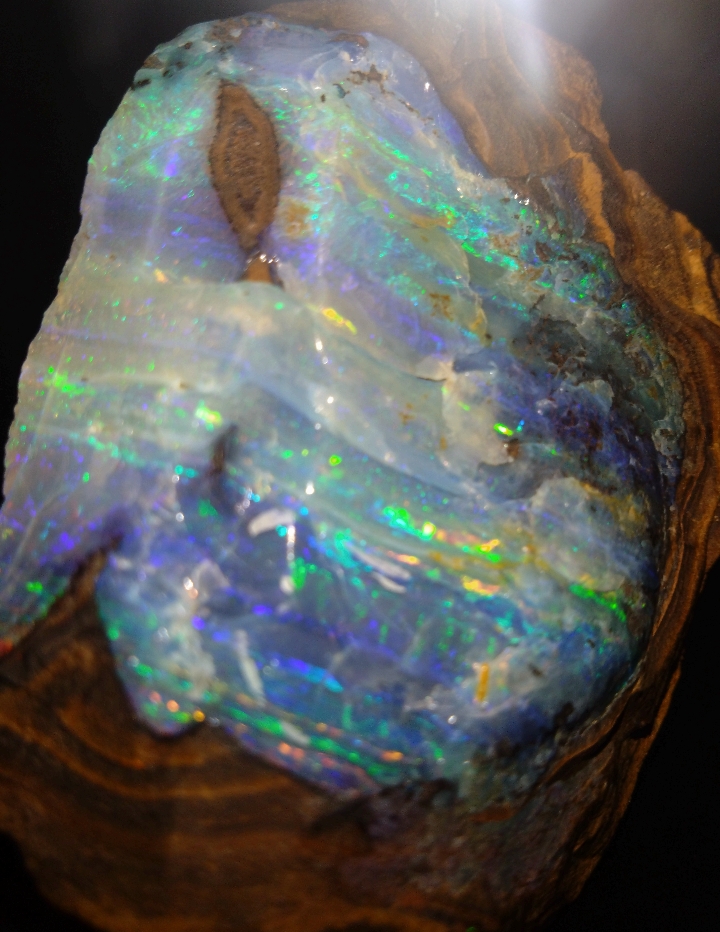 Zum Abschluss noch ein sehr schöner und ziemlich großer Boulder Opal. Ich hatte ihn aus mehreren Richtungen fotografiert um das schönste Foto herauszusuchen. Ich zeige jetzt hier nur irgendeins, da alle traumhaft schöne Farben haben.