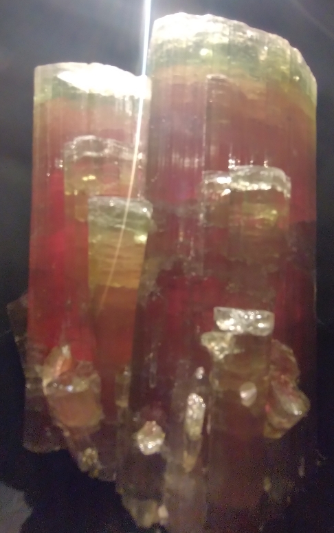 Ich zeige hier nur einen kleinen Teil der Mineralienausstellung, da diese in einem dunklen Teil liegen und nur punktuell beleuchtet werden. Zusammen mit einer Fettfinger verschmierten Scheibe, hat mein Handy vieles nicht fotografieren wollen.