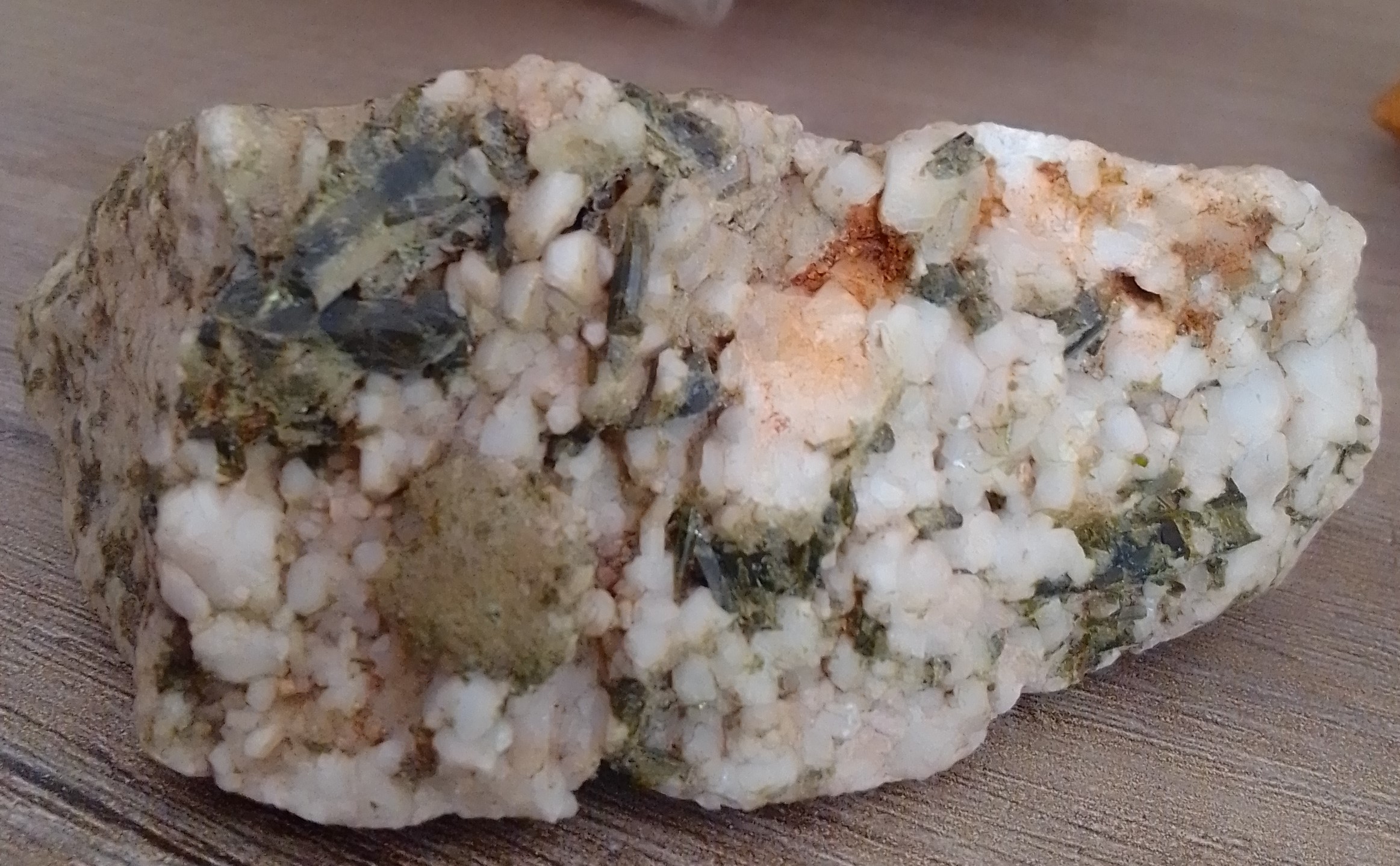 Ich tendiere mehr zu Epidot mit Quarz. Wenn ich mir Bilder online anschaue, kommt das meinem Stein sehr nahe.