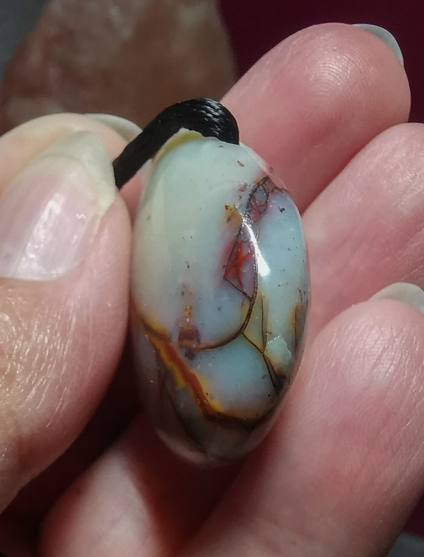 Ich war skeptisch gewesen und hatte gedacht, dass es bestimmt kein Opal ist... er sagte zwar noch, das es ein neuartiger Stein sei und noch nicht so bekannt sei oder so.... egal, als ich den Stein sah, wusste ich, der gehört zu mir.... es lag auffallend bei den grünen Steinen, wo es bestimmt nicht hingehört hatte.... es lächelte mich regelrecht mit ihrer sanftheit an.