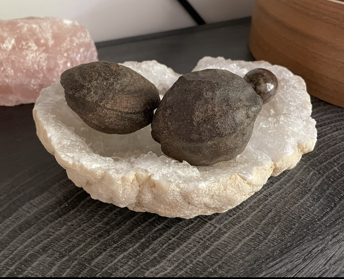 ich hatte bereits schon in einem anderen Bericht erzählt, dass ich heute meine ersten Moqui Marbles erhalten habe. Nun da ich nicht genau weiß ob die beiden wirklich ein Pärchen sind, bin ich noch am überlegen ob ich die behalten soll. Nun ja, ich hatte die beiden in der Hand und irgendwie fühlten die sich kalt an. Und es dauerte irgendwie bis überhaupt ein bisschen Wärme spürbar war. Ich dachte mir, dann lege ich die erstmal auf die Bergkristall Geode bis ich weiß was ich mit den beiden mache. Nun liegen die seit wenigen Minuten da drauf und was soll ich sagen?