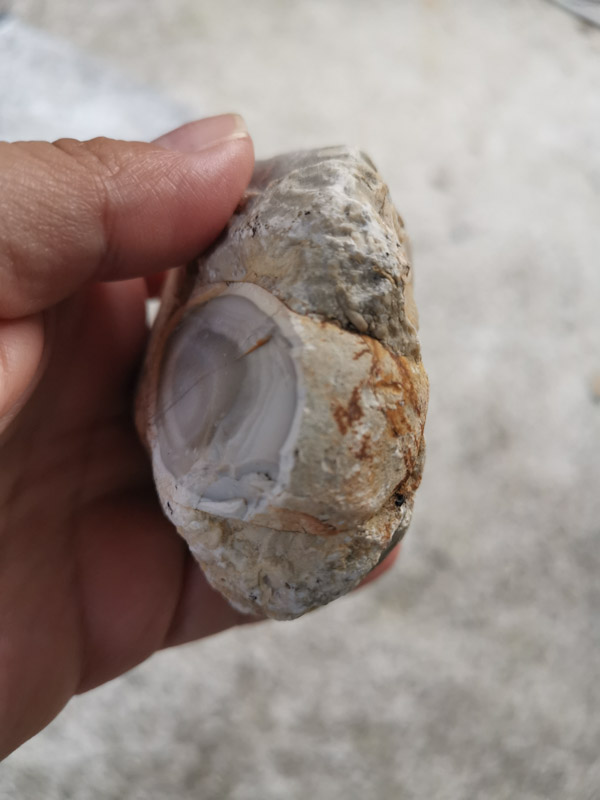 Mein Sohn fand mal diesen Stein hier im Wald und der sieht echt speziell aus. Was fpr ein Stein könnte da drin sein sein und der weitere die noch zu sehen ist?