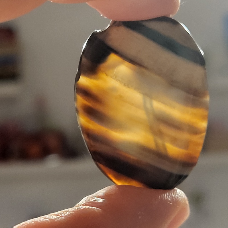 Wenn das so ist, ist es wohl kein Achat, sondern etwas anderes, wahrscheinlich Glas. Das würde sich auch mit deiner Erkenntnis Schlieren gesehen zu haben decken.