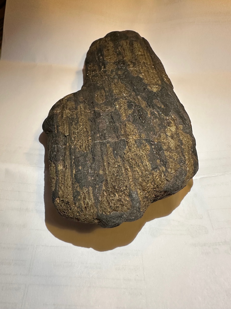 Ich habe diesen großen Stein am Strand in Spanien gefunden. Wiegt locker 2-3 kg. Die vielen glänzenden goldenen Streifen und Flecken machen mich sehr neugierig. Ist vielleicht Pyrit?