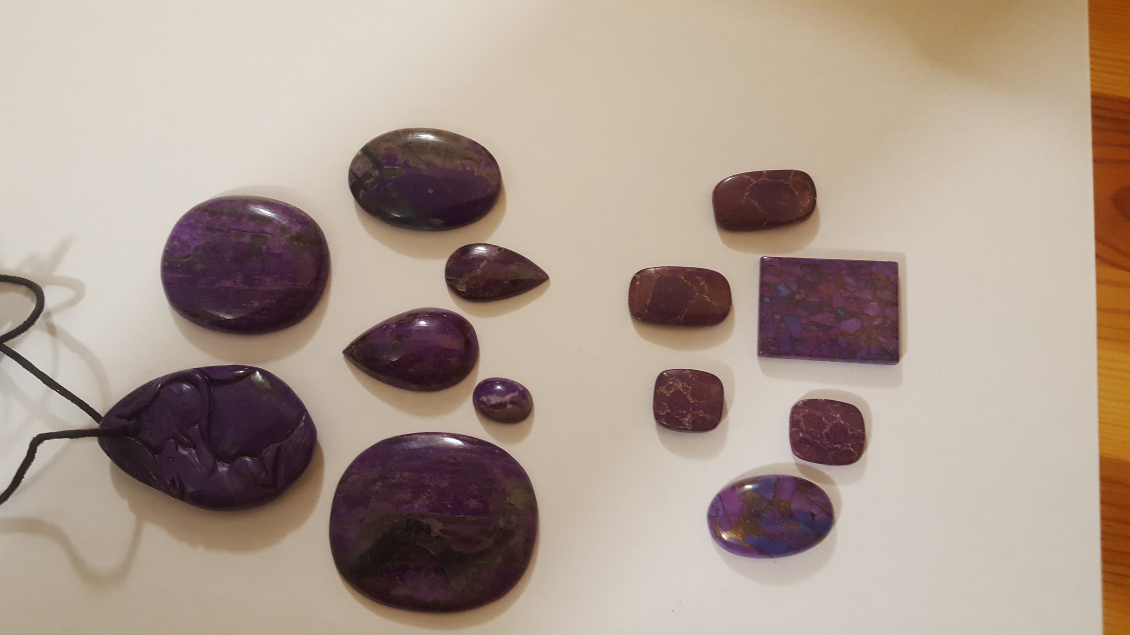 - und wo die Cabochons liegen ... linke Seite echter Sugilith/rechte Seite Fake Sugilith